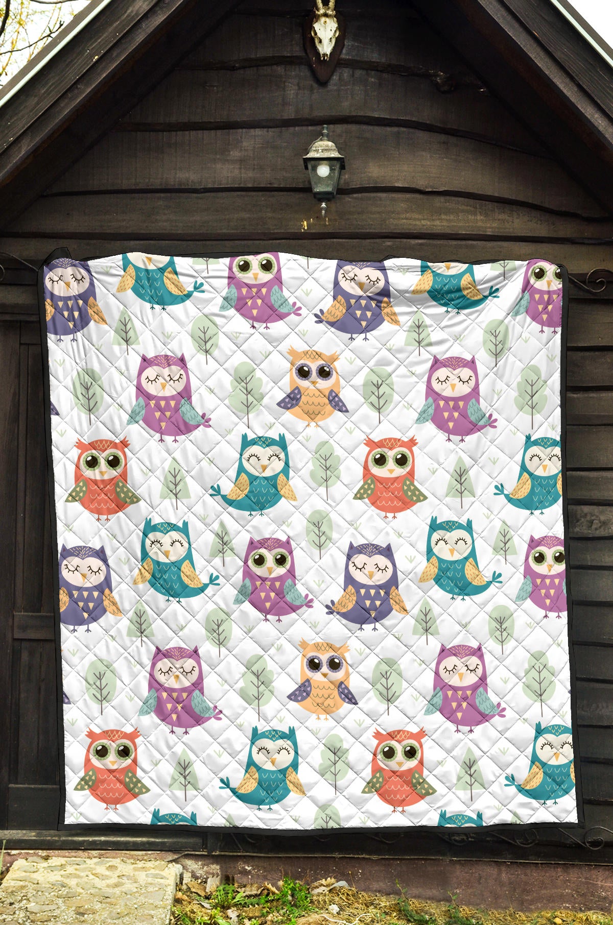 Cute Owl Pattern Premium Quilt is a uniqued design and limited item. It made to order, hand printed, and sewn with love in our factory.