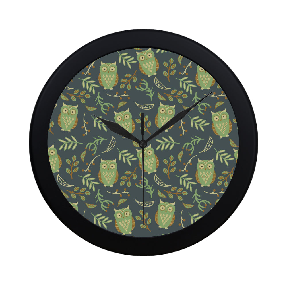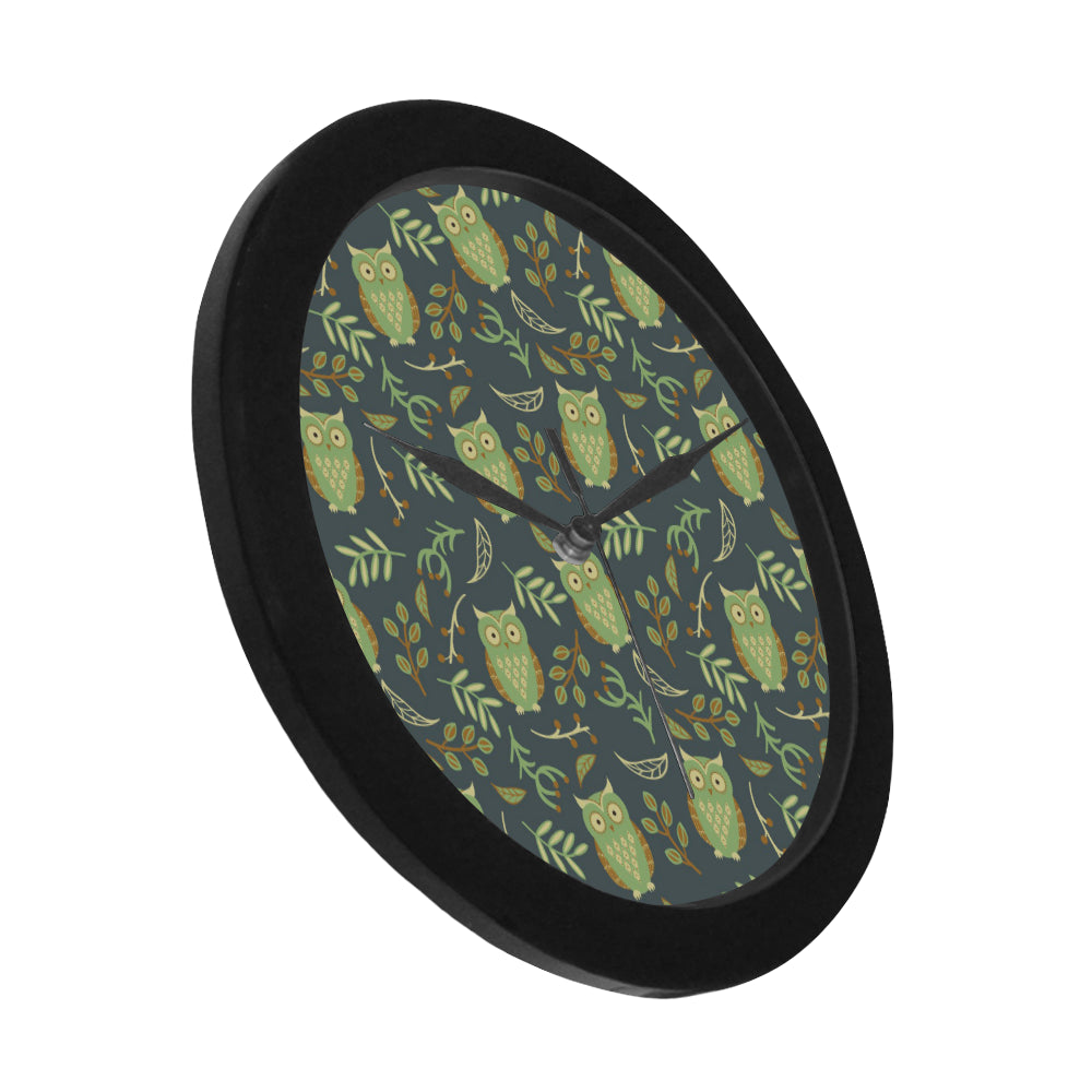 Cute owls leaves pattern Elegant Black Wall Clock is a uniqued design and limited item. It made to order, hand printed, and sewn with love in our factory.