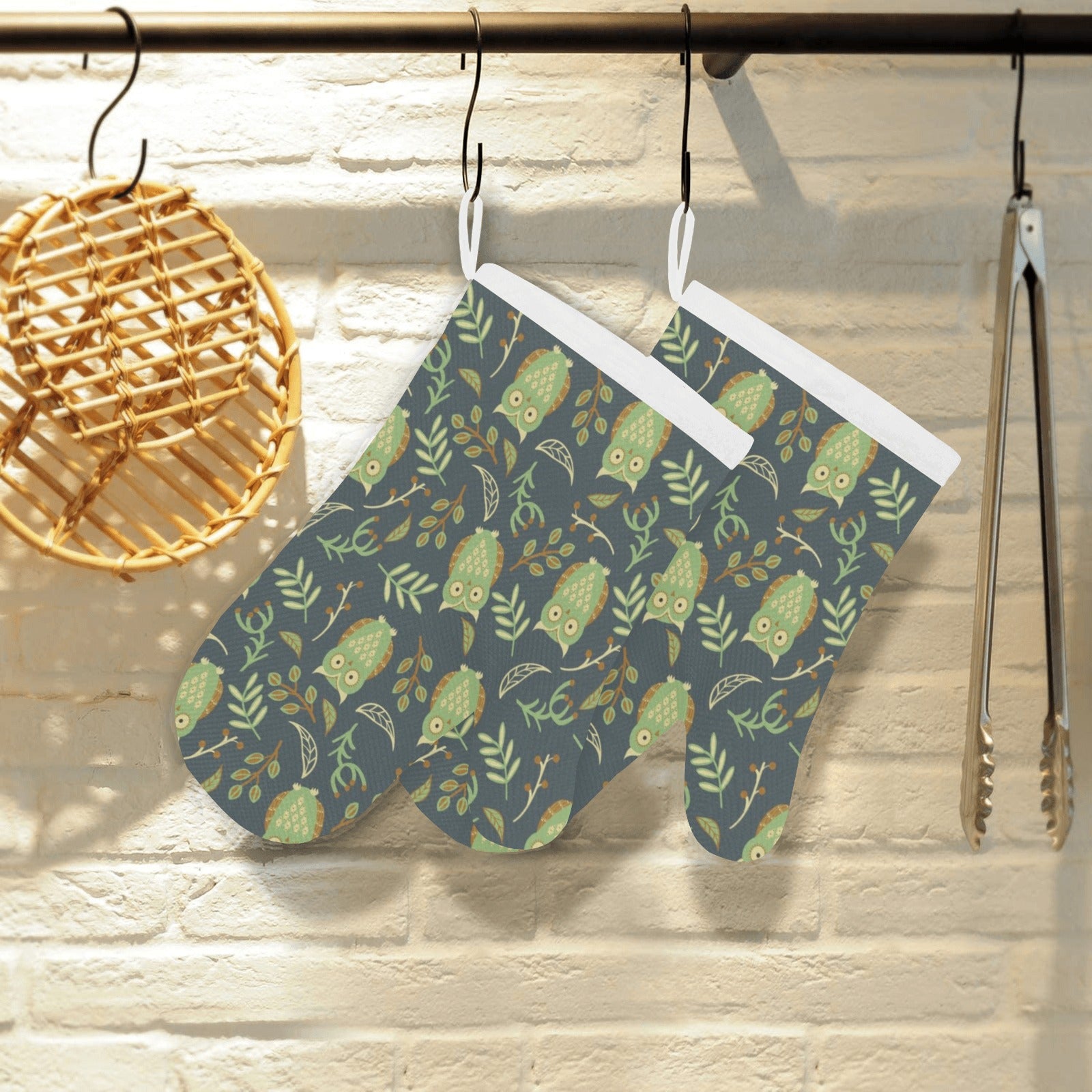 Cute owls leaves pattern Heat Resistant Oven Mitts
