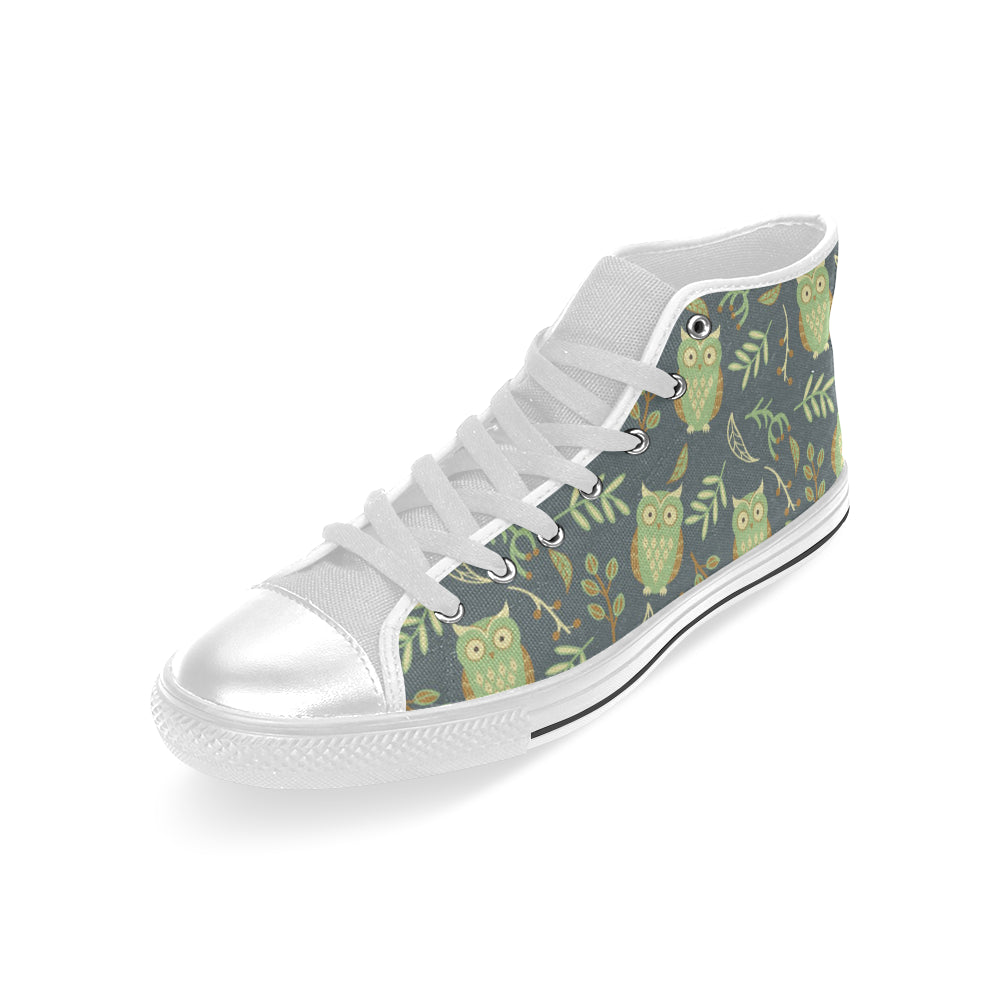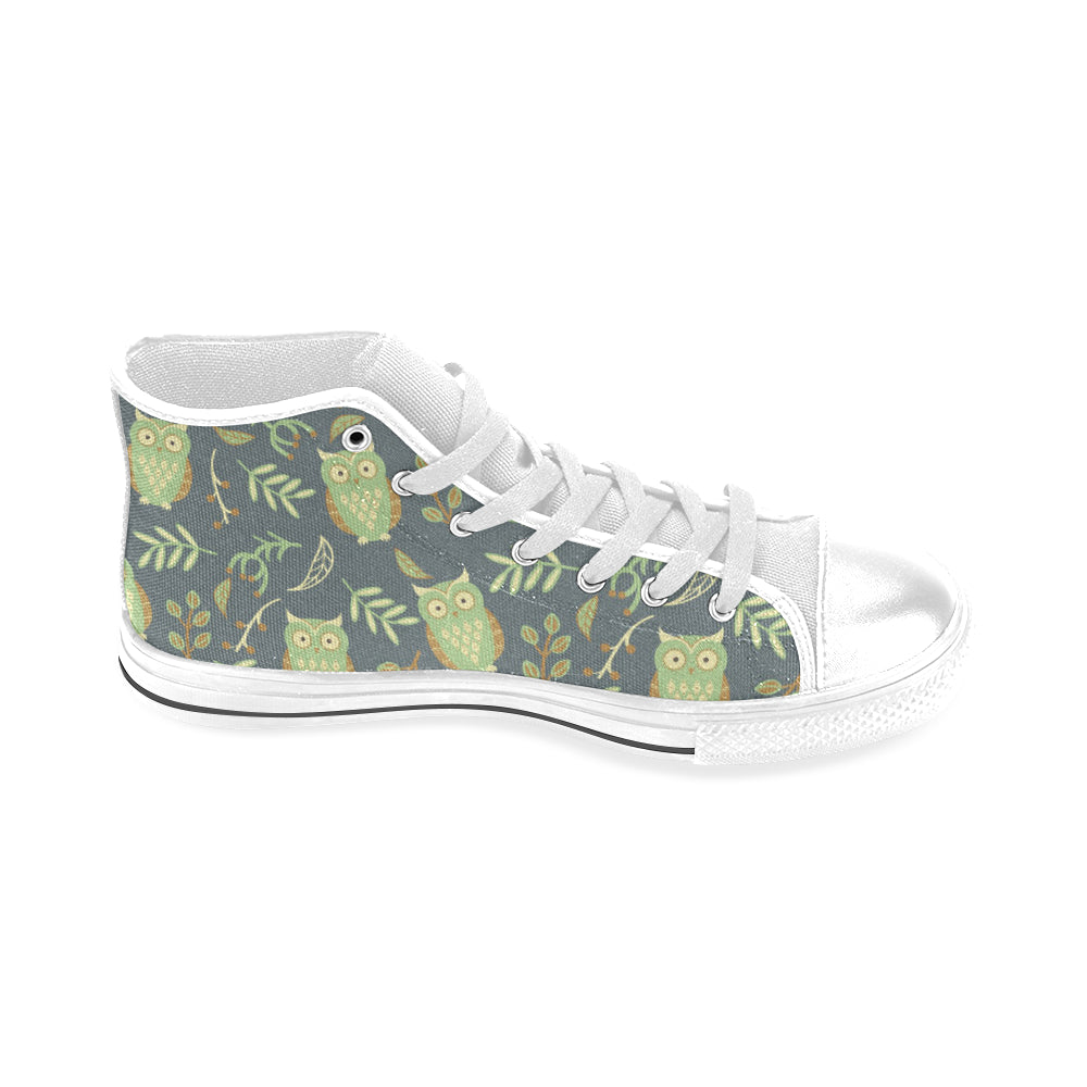 Cute owls leaves pattern Men's High Top Canvas Shoes White