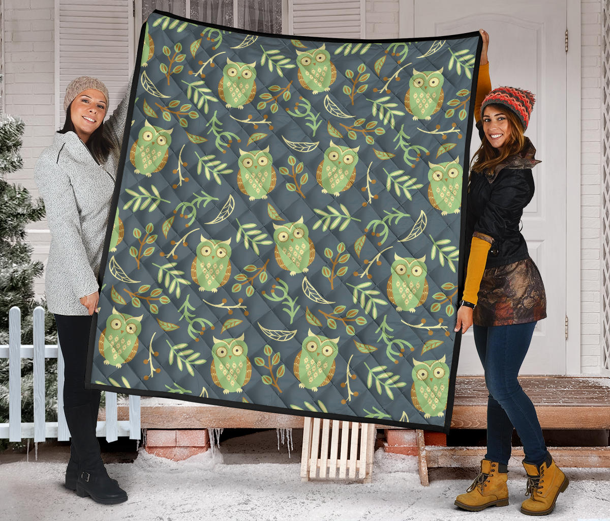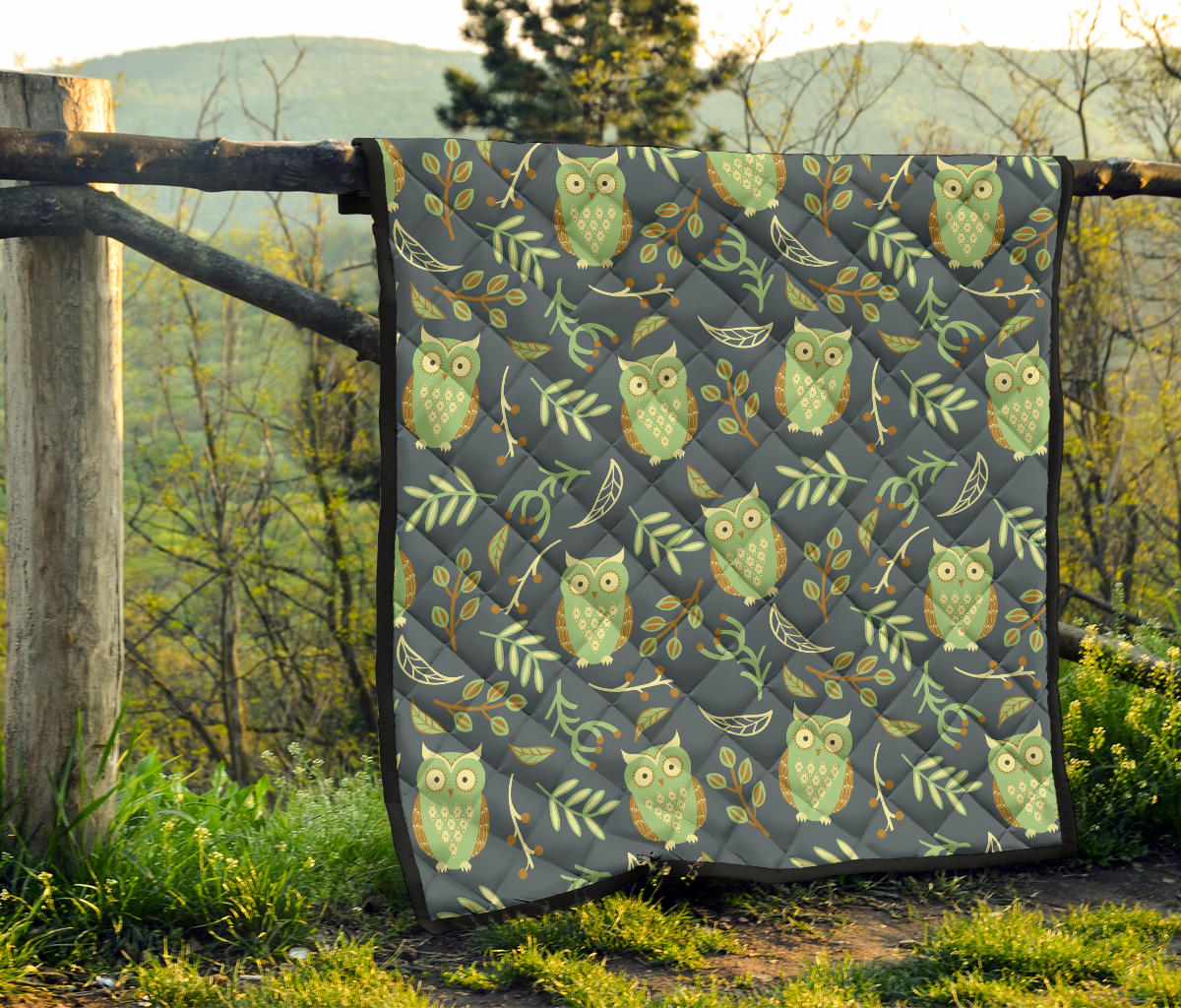 Cute Owls Leaves Pattern Premium Quilt is a uniqued design and limited item. It made to order, hand printed, and sewn with love in our factory.