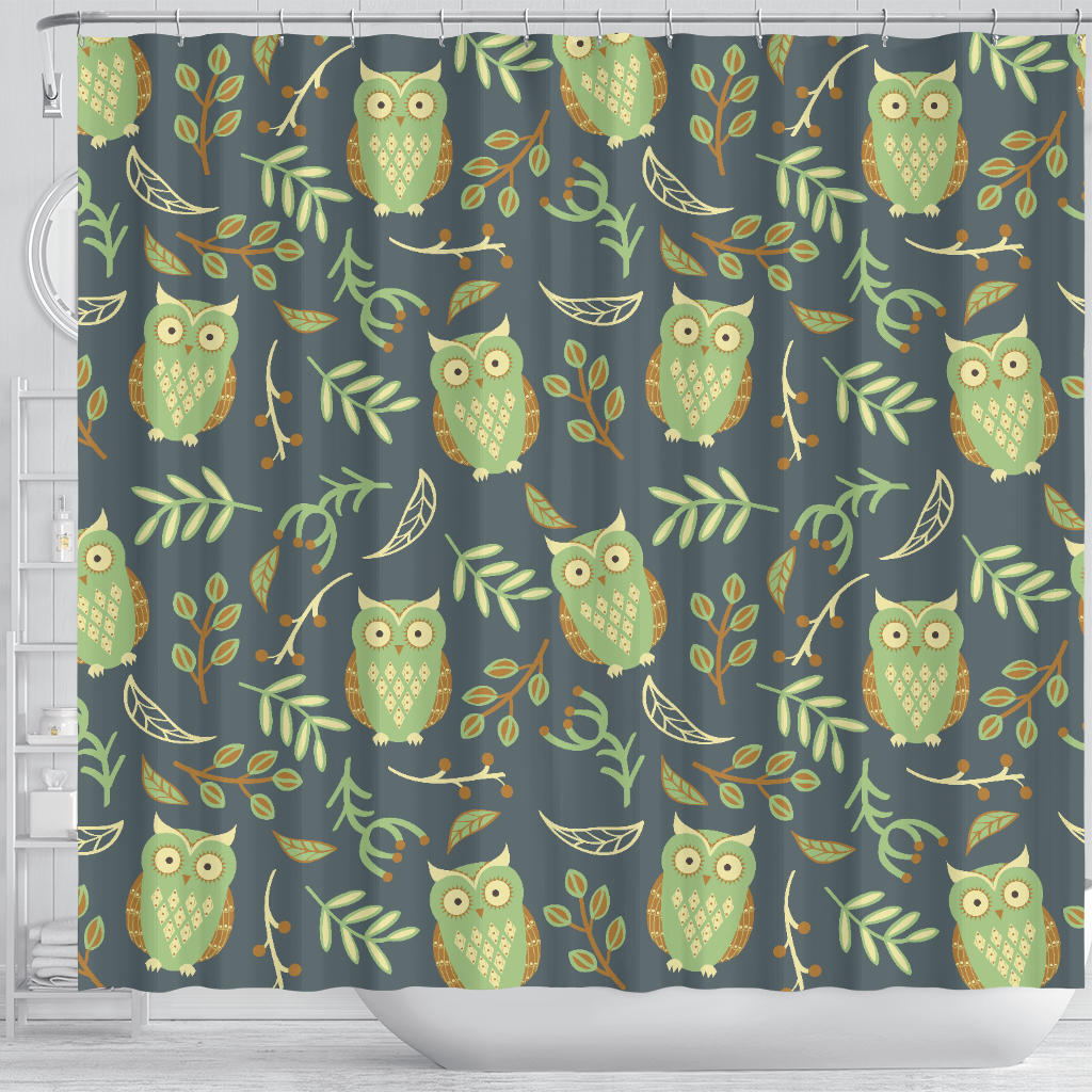 Cute Owls Leaves Pattern Shower Curtain Fulfilled In US