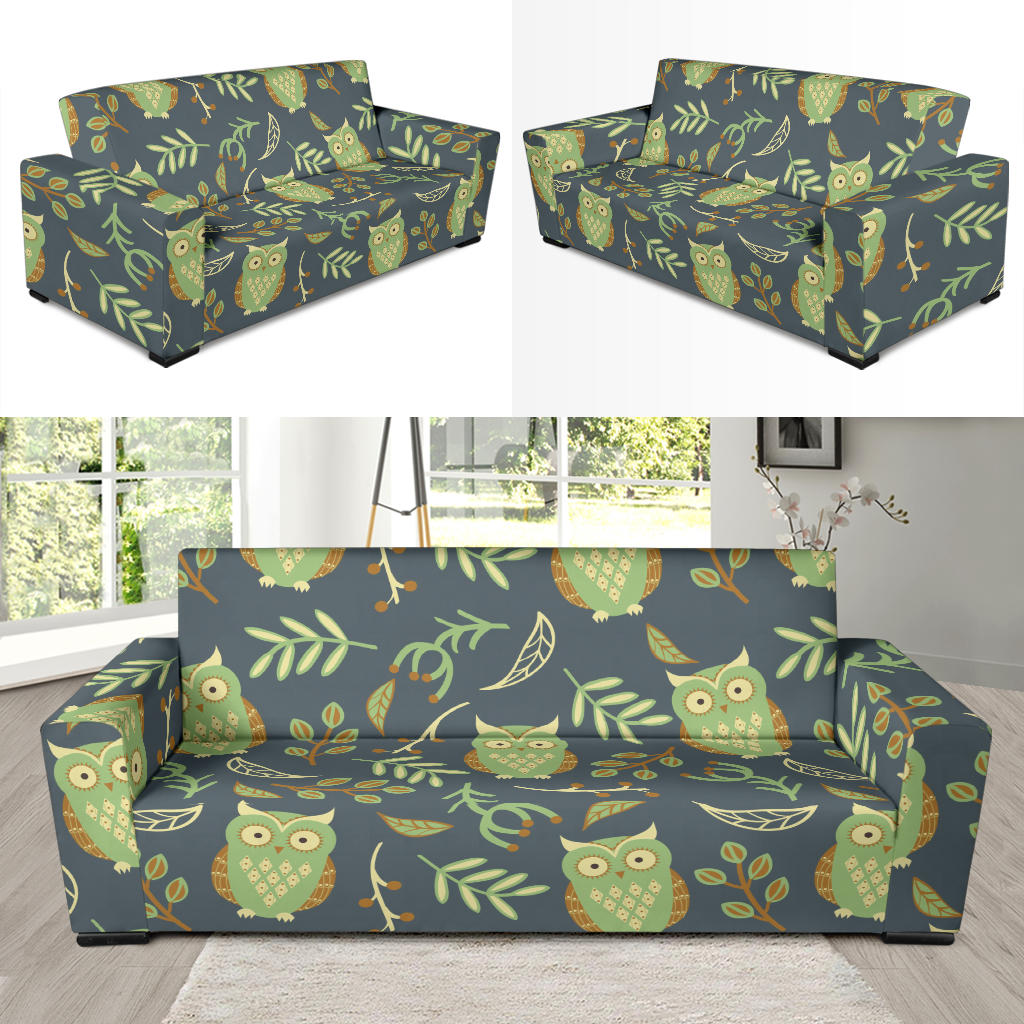 Cute owls leaves pattern Sofa Slipcover is a uniqued design and limited item. It made to order, hand printed, and sewn with love in our factory.