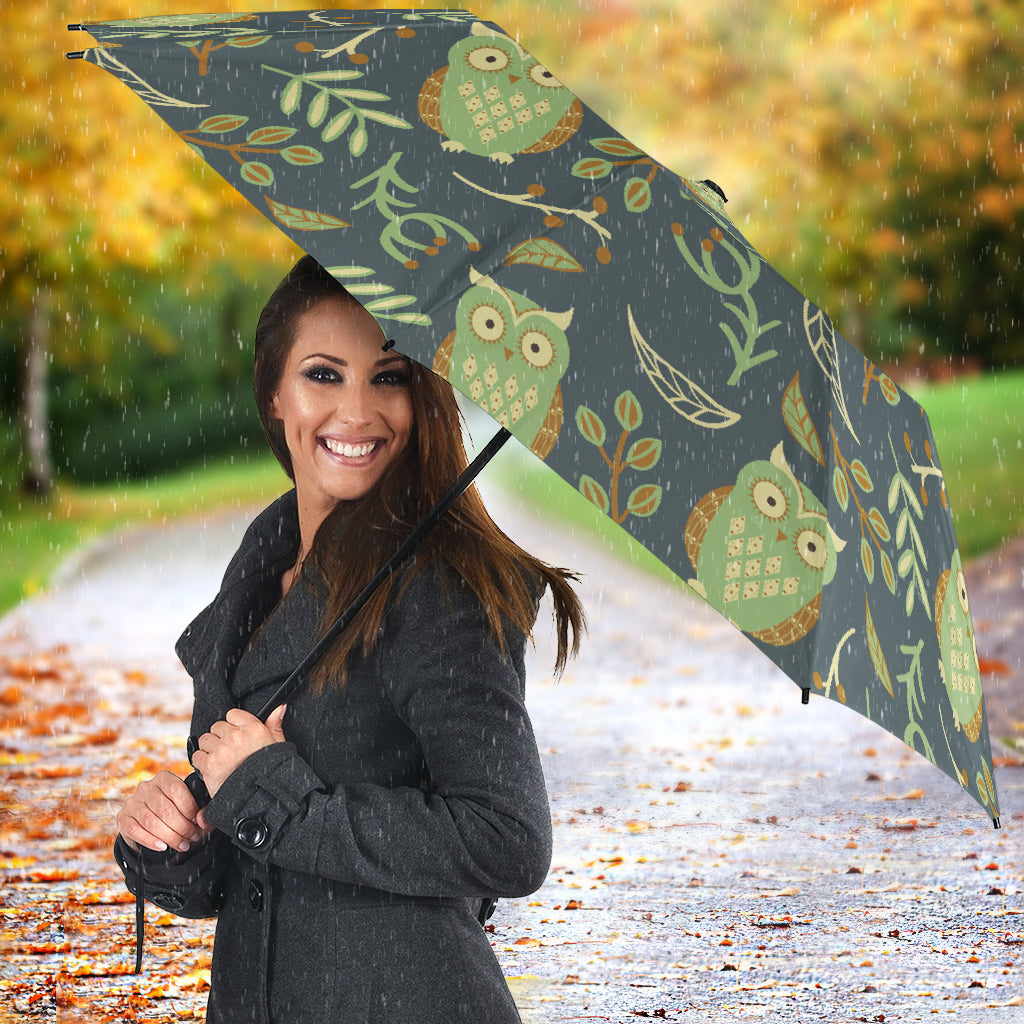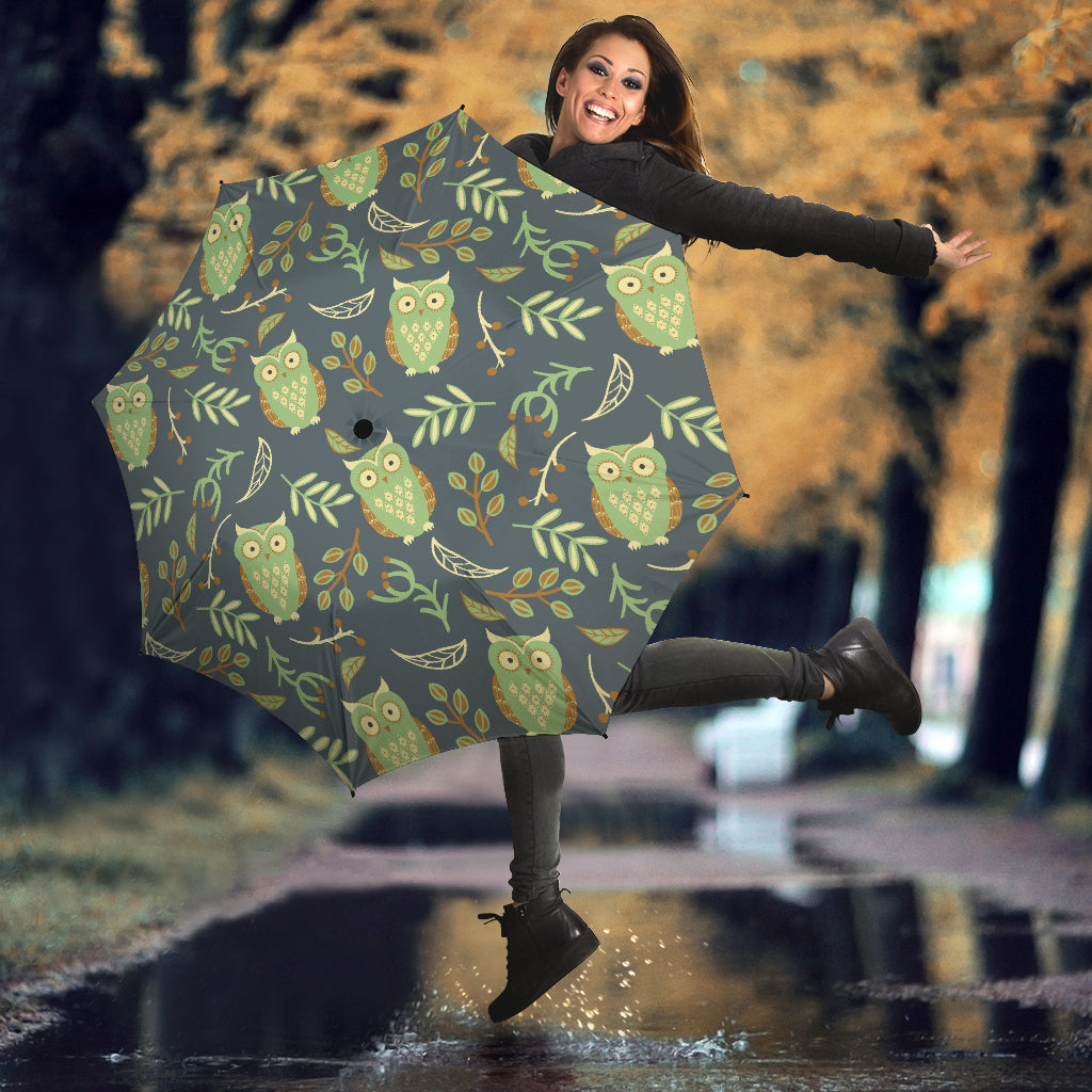 Cute Owls Leaves Pattern Umbrella