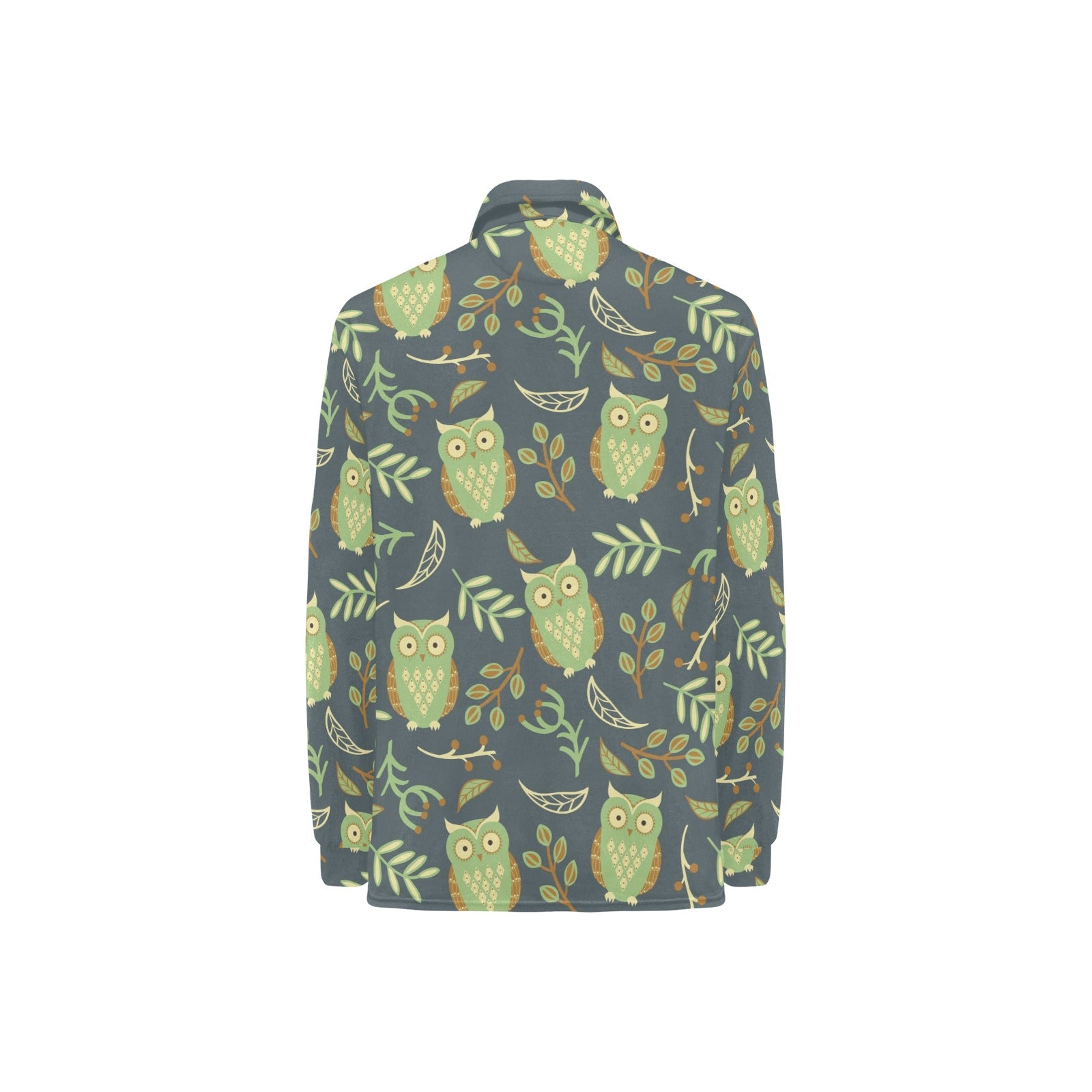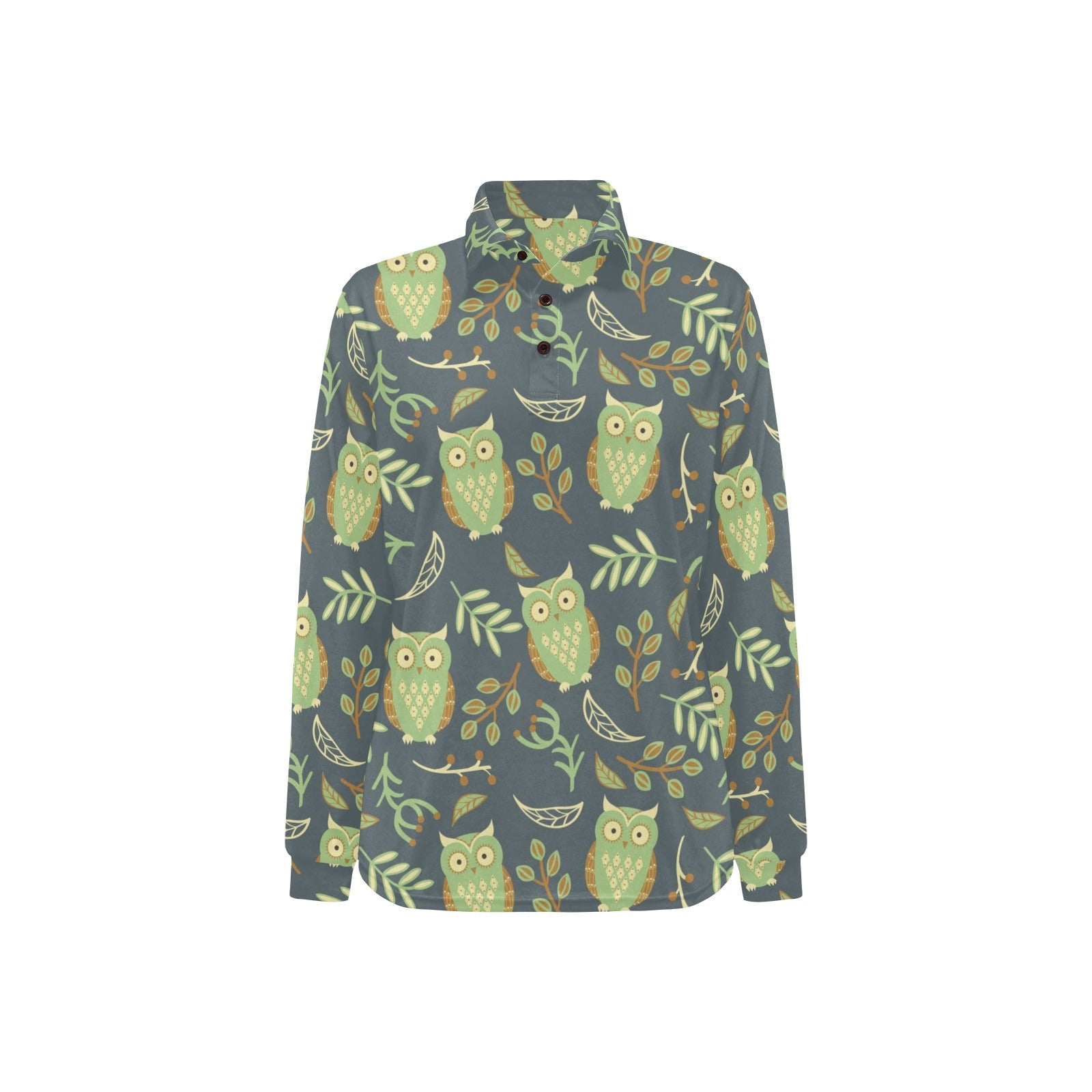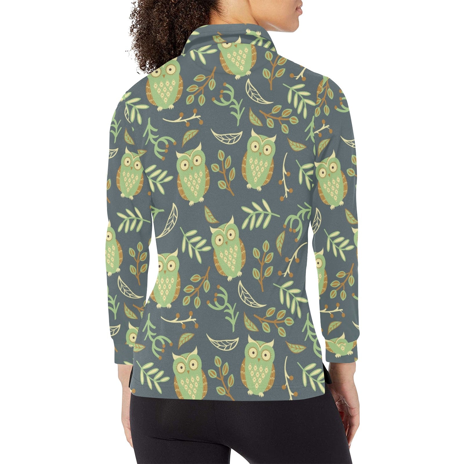 Cute owls leaves pattern Women's Long Sleeve Polo Shirt