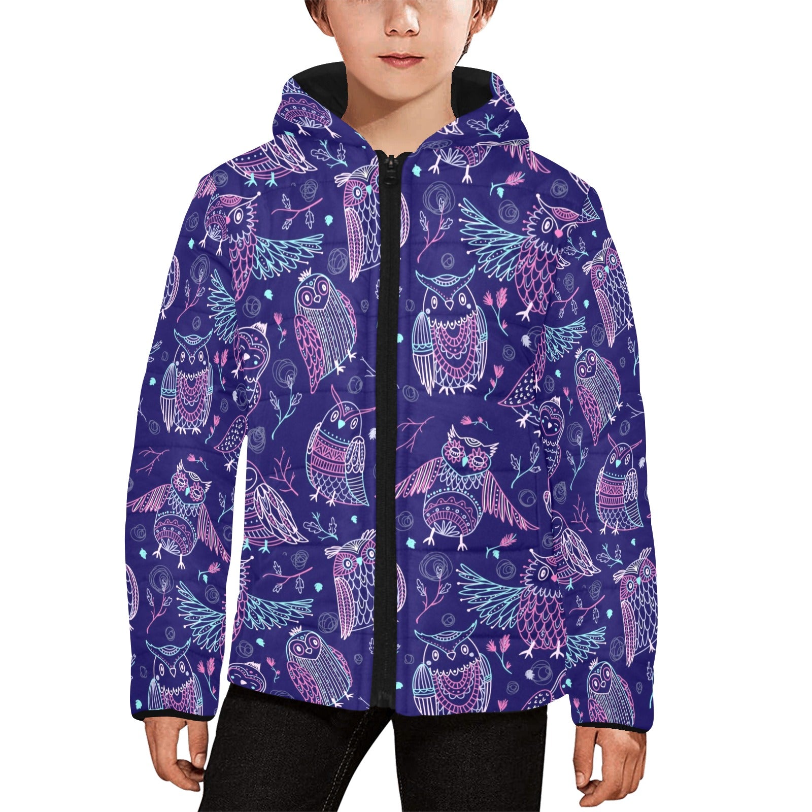 Cute owls pattern boho style ornament Kids' Boys' Girls' Padded Hooded Jacket
