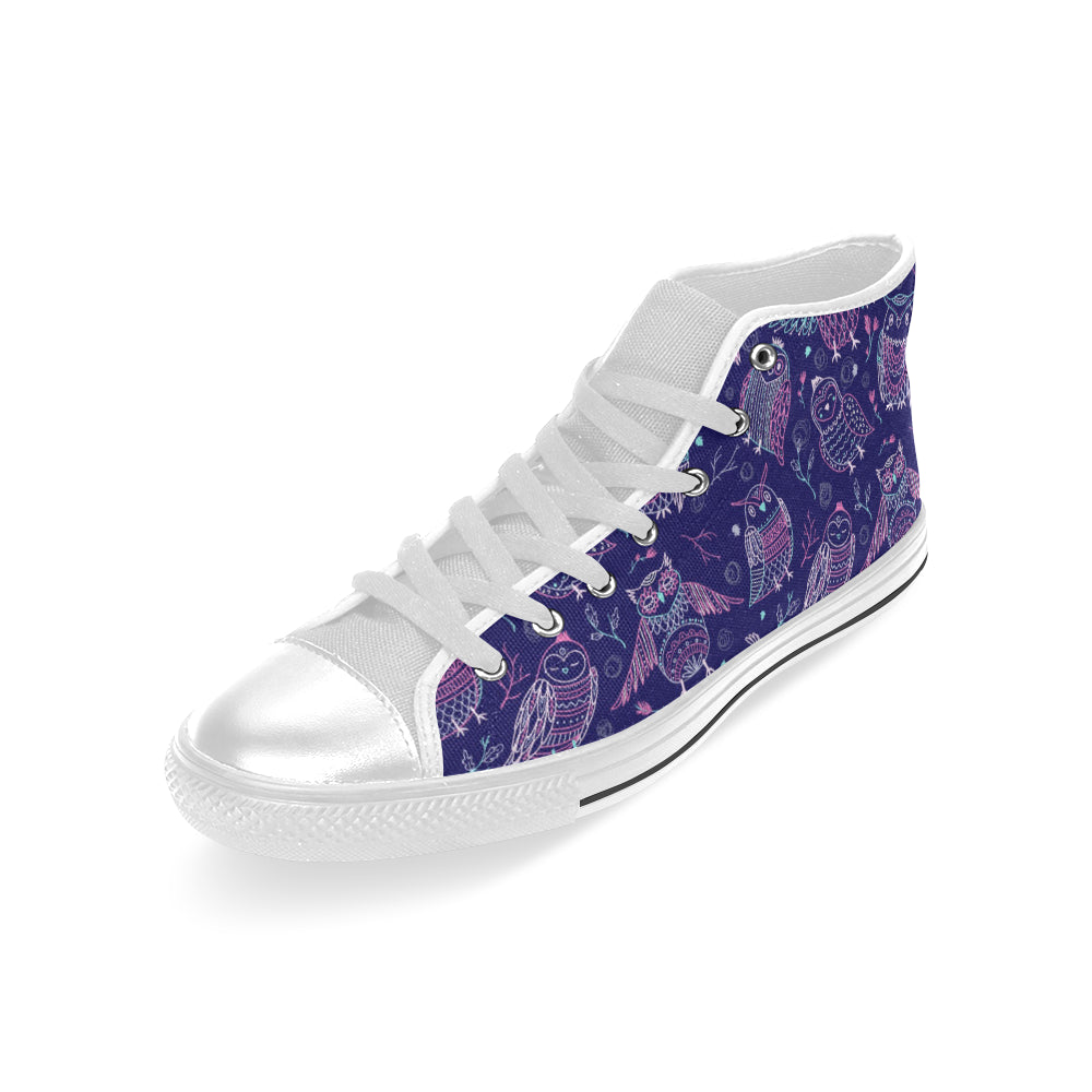 Cute owls pattern boho style ornament Men's High Top Canvas Shoes White
