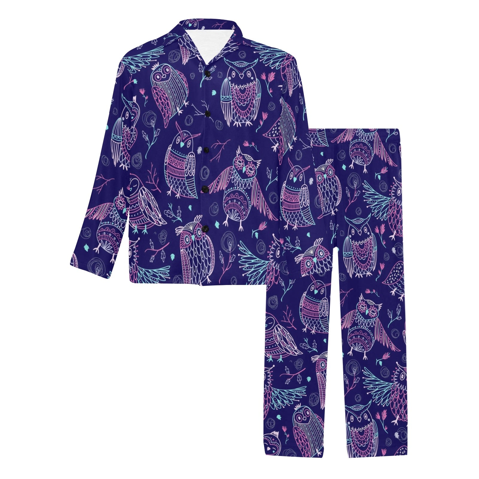 Cute owls pattern boho style ornament Men's Long Pajama Set