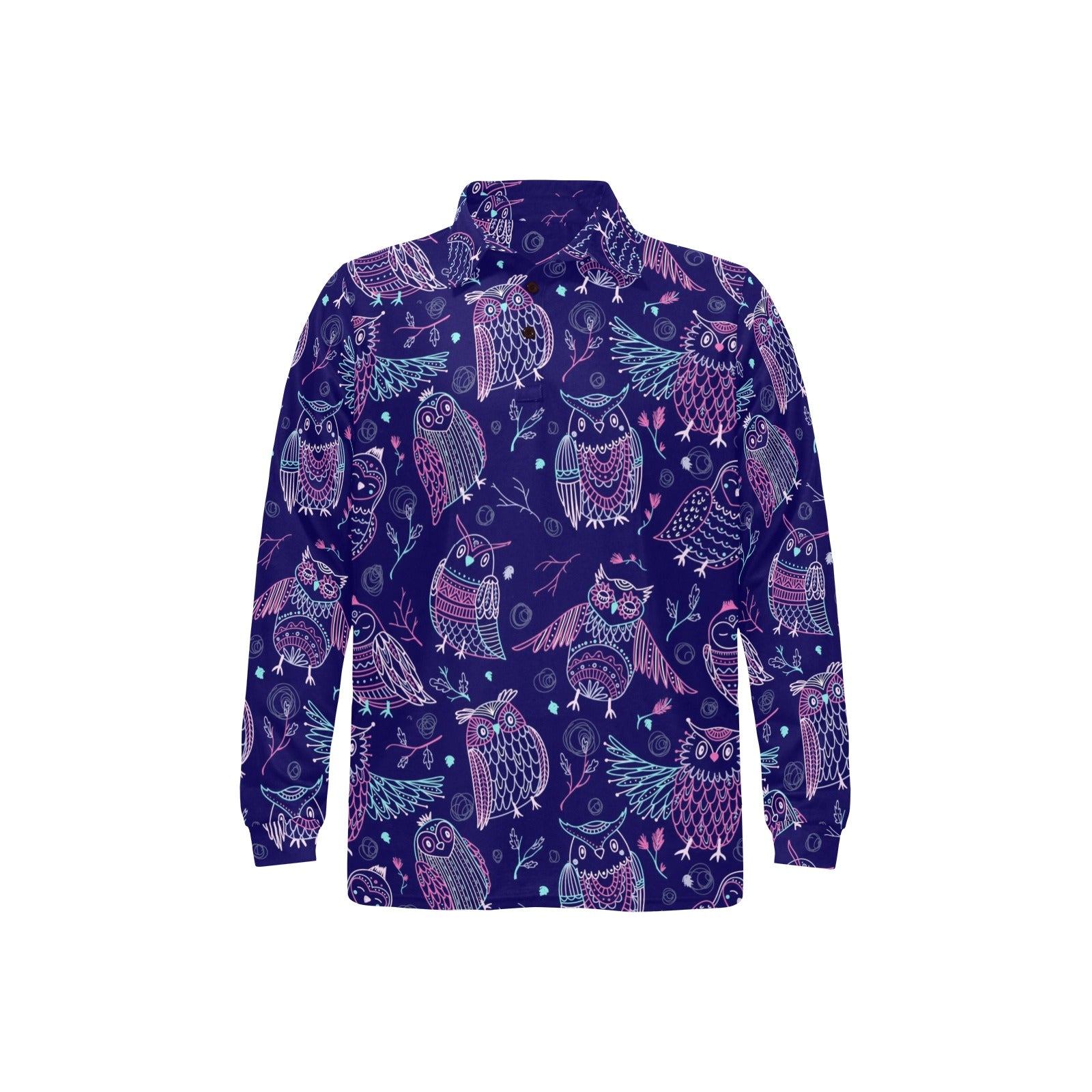 Cute owls pattern boho style ornament Men's Long Sleeve Polo Shirt