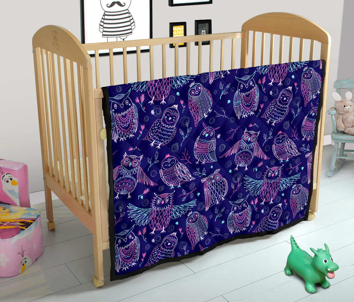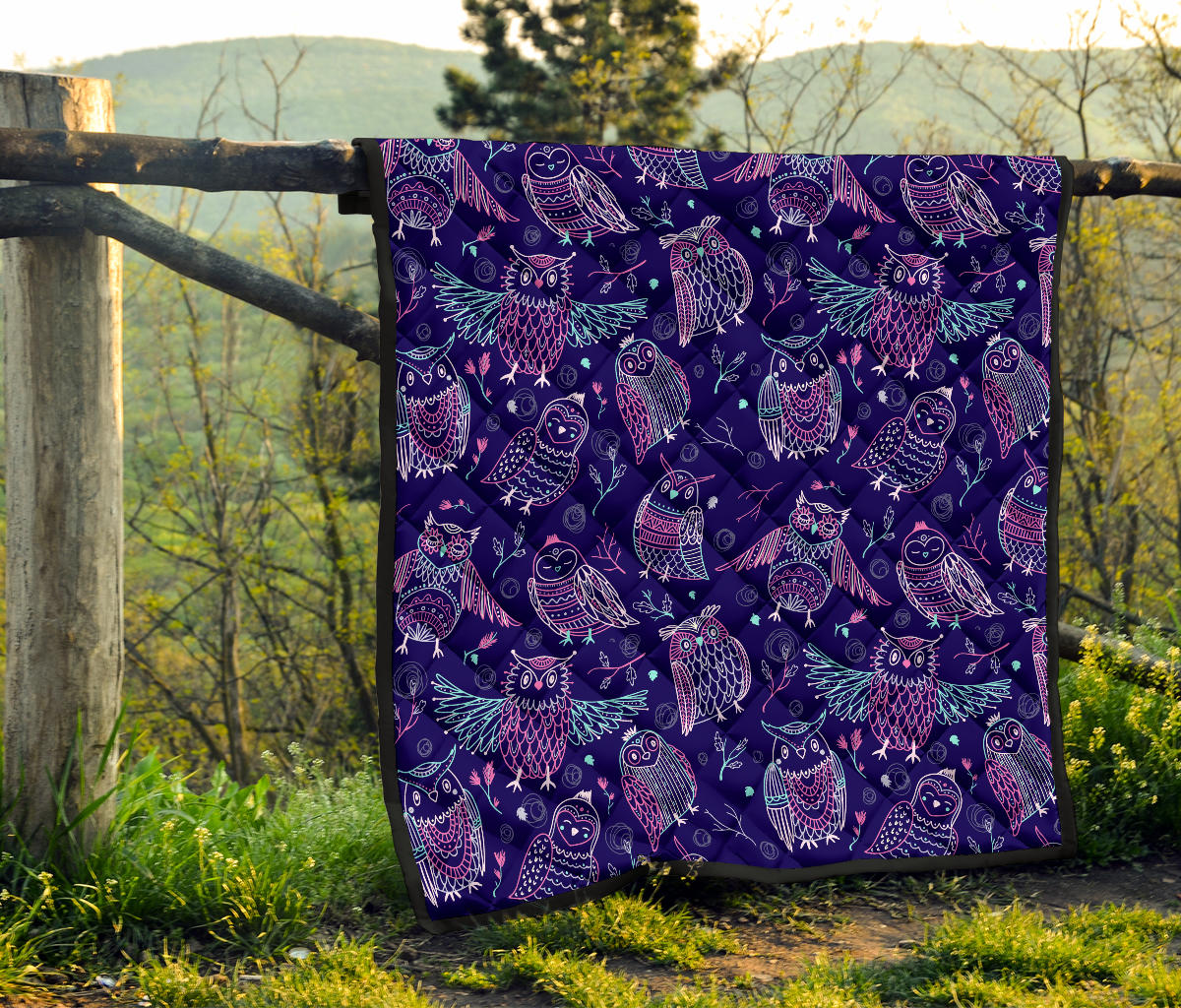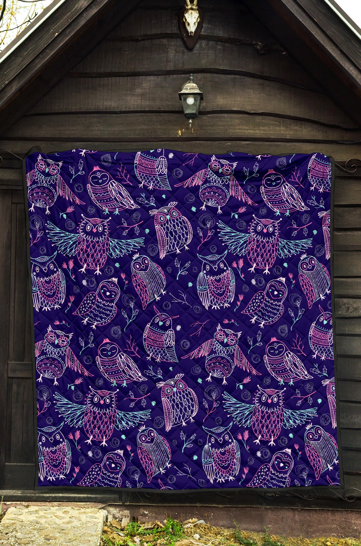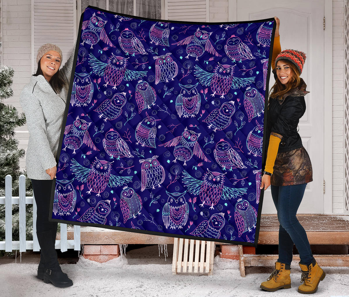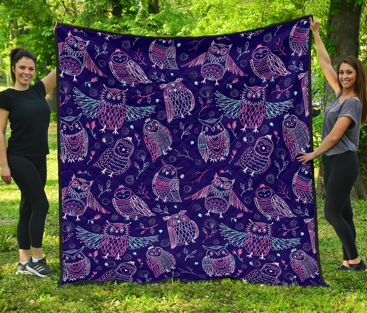Cute Owls Pattern Boho Style Ornament Premium Quilt is a uniqued design and limited item. It made to order, hand printed, and sewn with love in our factory.