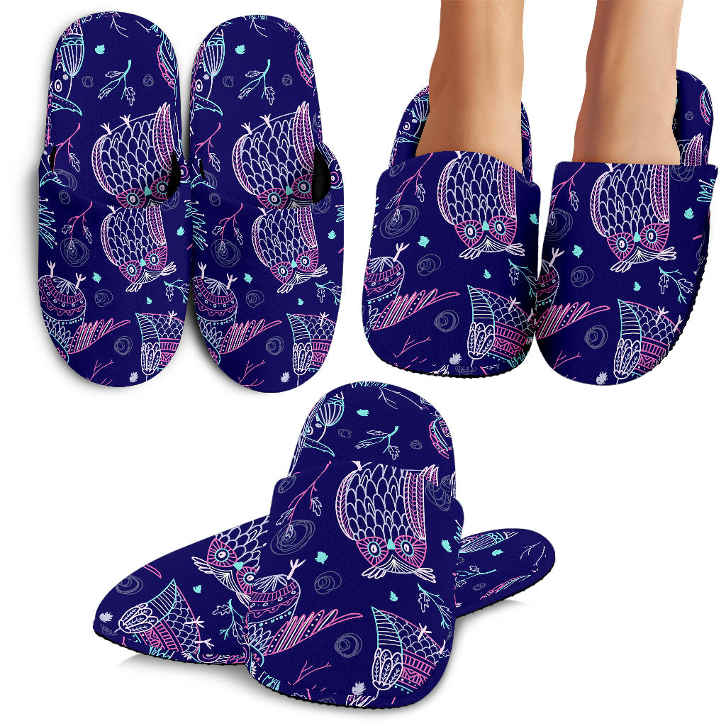 Cute Owls Pattern Boho Style Ornament Slippers