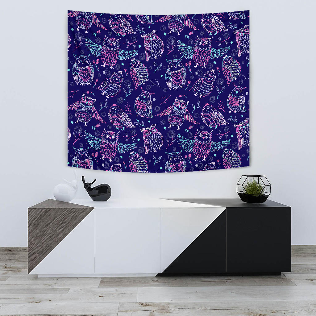 Cute Owls Pattern Boho Style Ornament Wall Tapestry