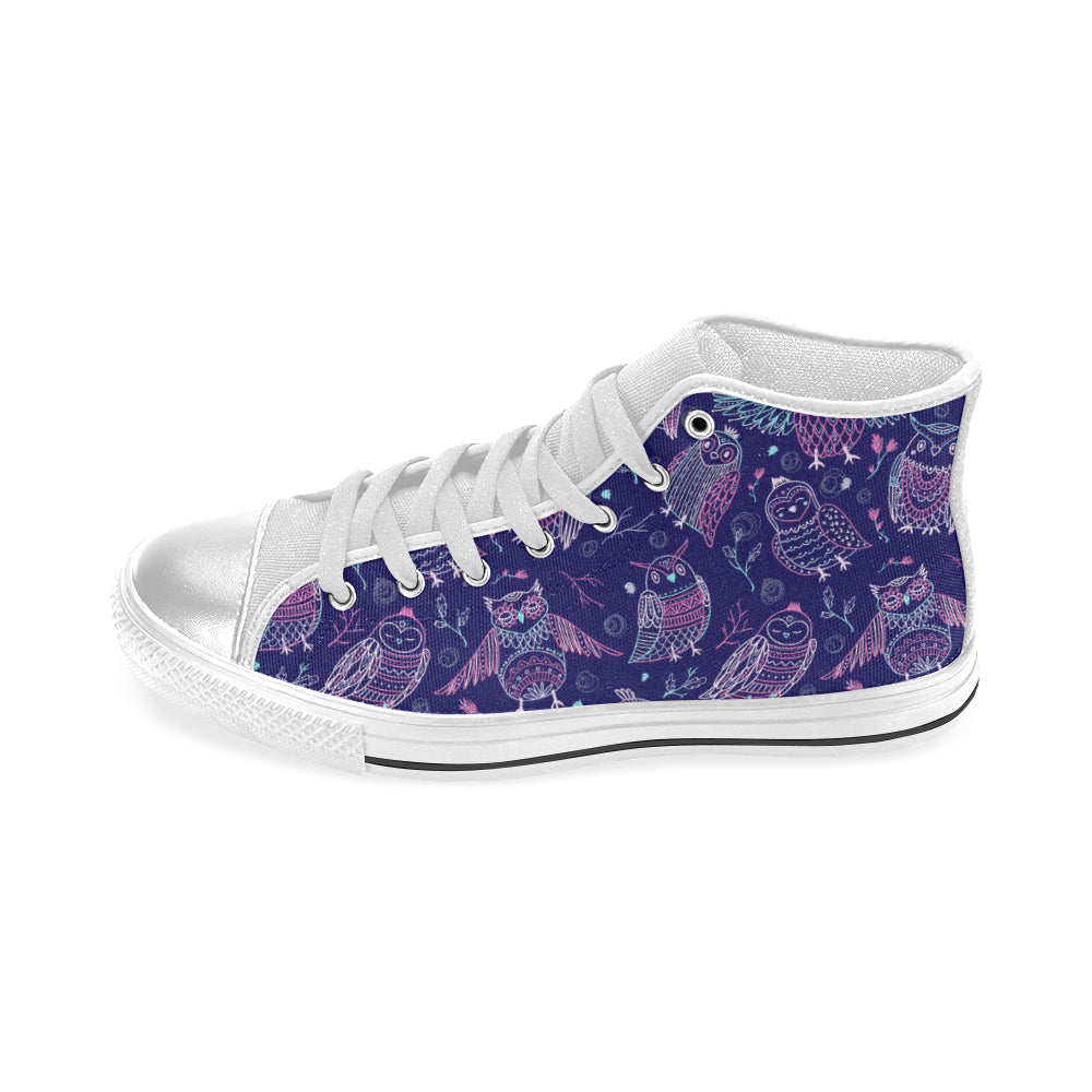 Cute owls pattern boho style ornament Women's High Top Canvas Shoes White