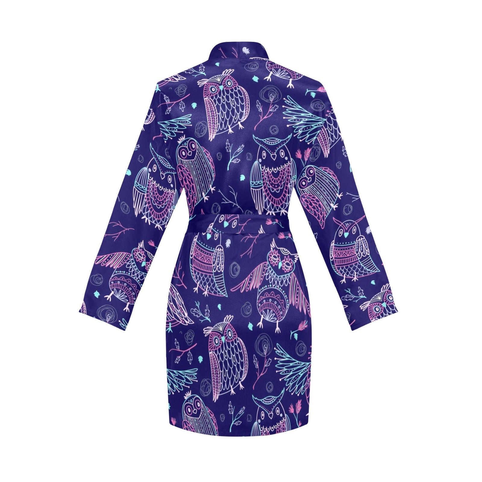 Cute owls pattern boho style ornament Women's Long Sleeve Belted Night Robe