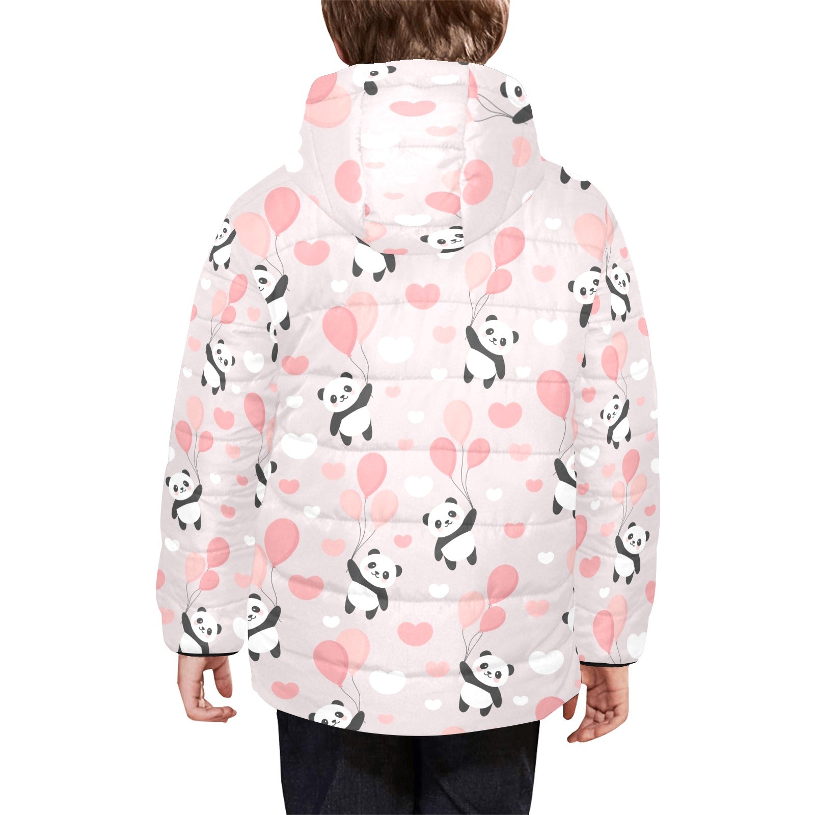 Cute panda ballon heart pattern Kids' Boys' Girls' Padded Hooded Jacket