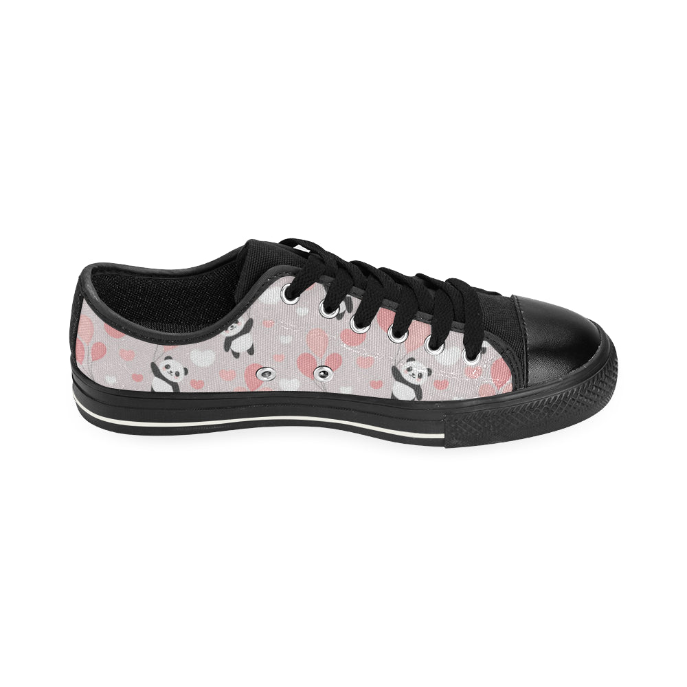 Cute panda ballon heart pattern Men's Low Top Canvas Shoes Black