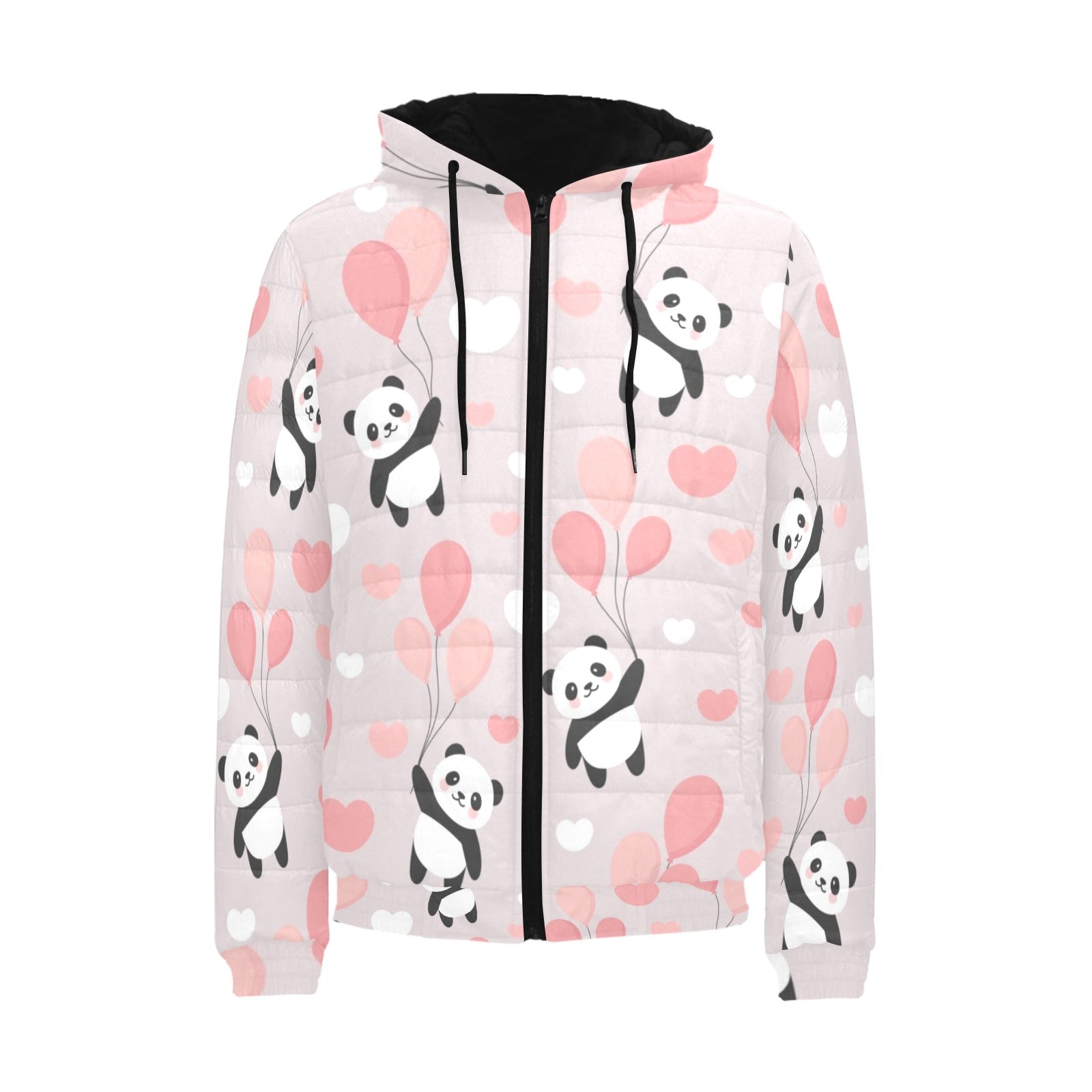 Cute panda ballon heart pattern Men's Padded Hooded Jacket