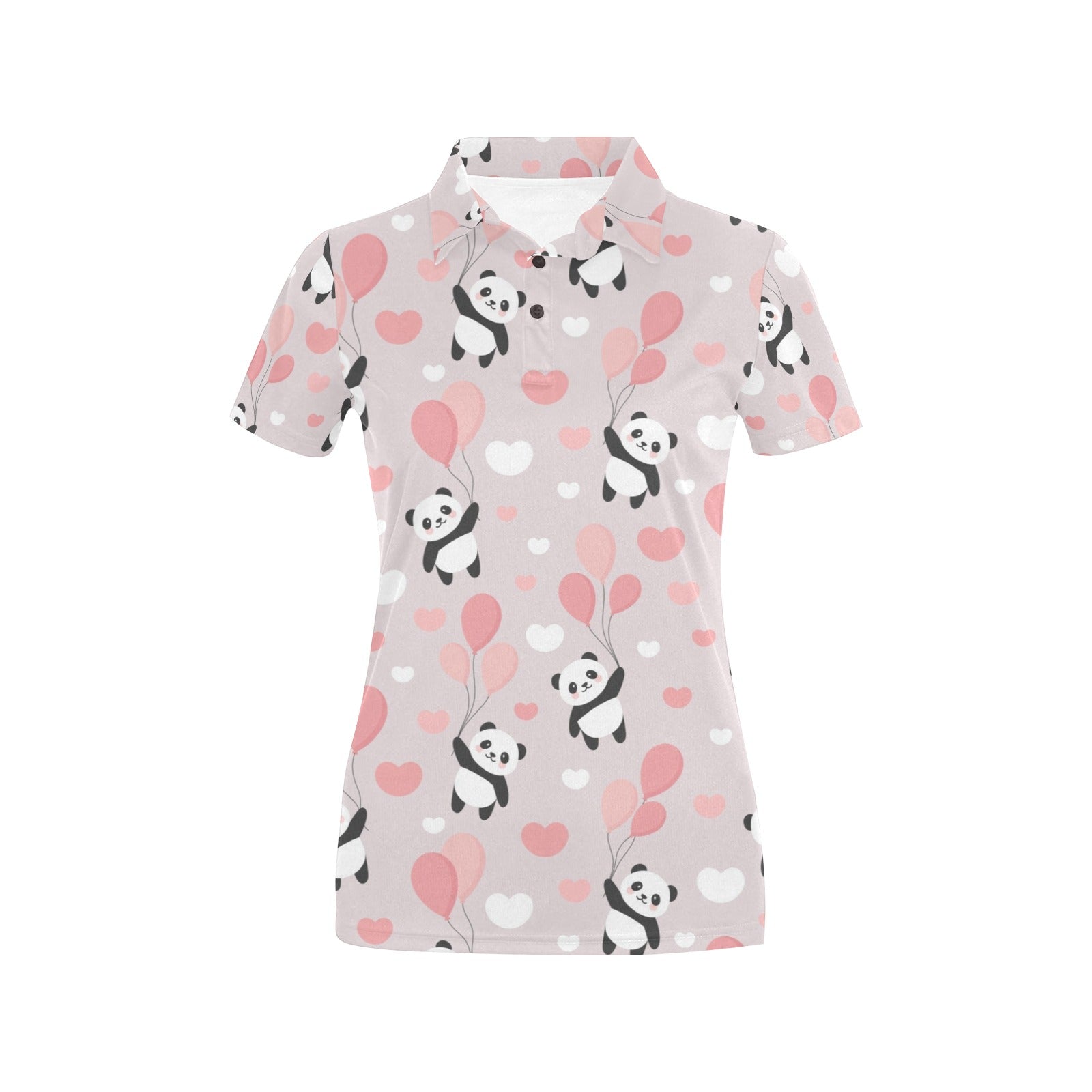 Cute panda ballon heart pattern Women's All Over Print Polo Shirt