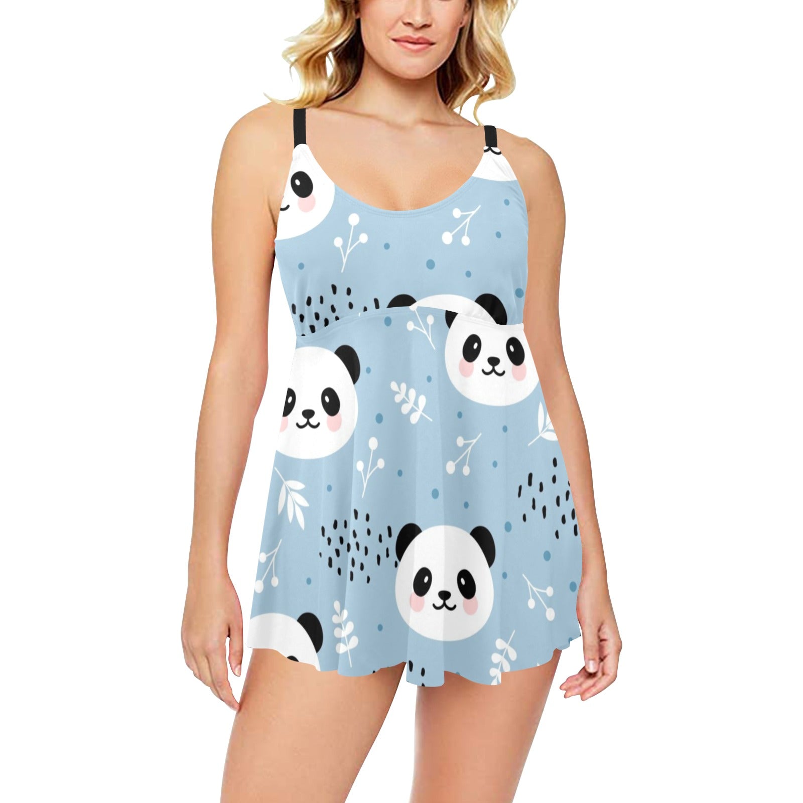 Cute panda pattern Chest Sexy Pleated Two Piece Swim Dress