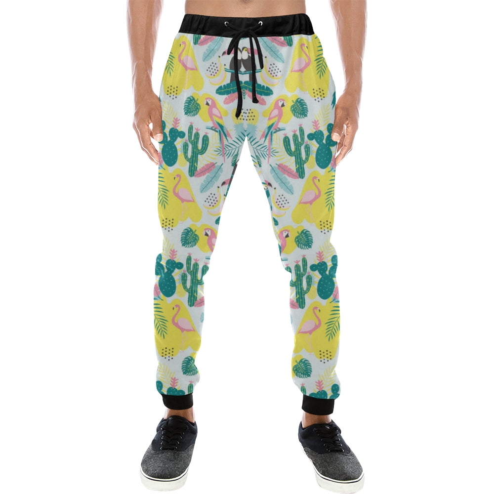 Cute parrot toucan flamingo cactus exotic leaves p Unisex Casual Sweatpants