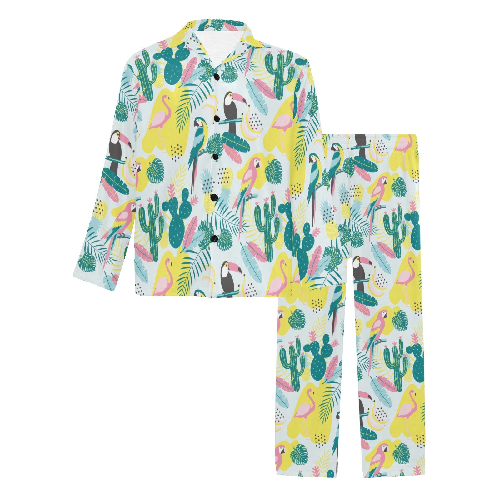 Cute parrot toucan flamingo cactus exotic leaves p Men's Long Pajama Set