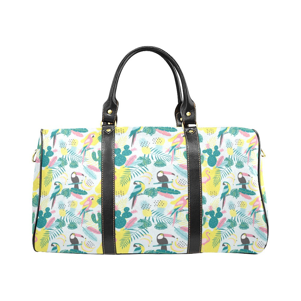 Cute parrot toucan flamingo cactus exotic leaves p Travel Bag