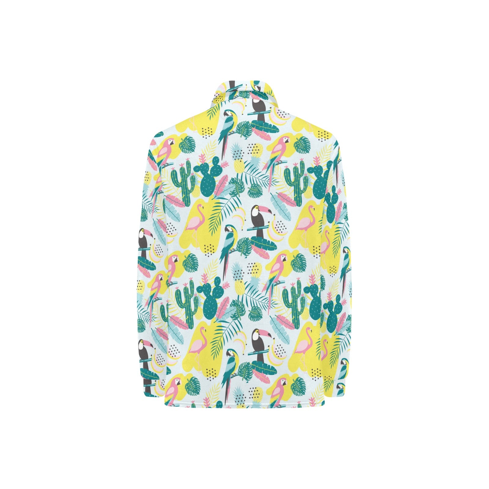 Cute parrot toucan flamingo cactus exotic leaves p Women's Long Sleeve Polo Shirt