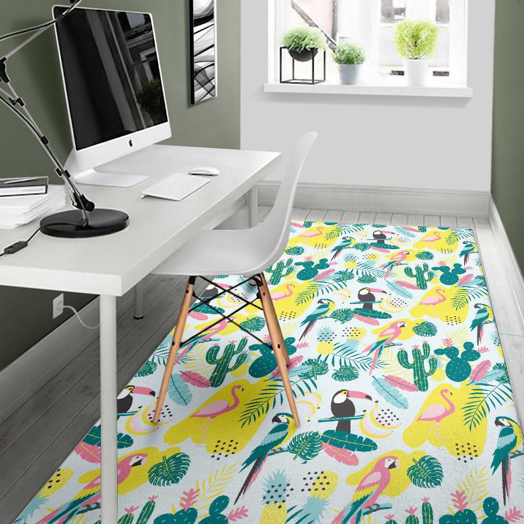 Cute parrot toucan flamingo cactus exotic leaves pattern Area Rug is a uniqued design and limited item. It made to order, hand printed, and sewn with love in our factory.