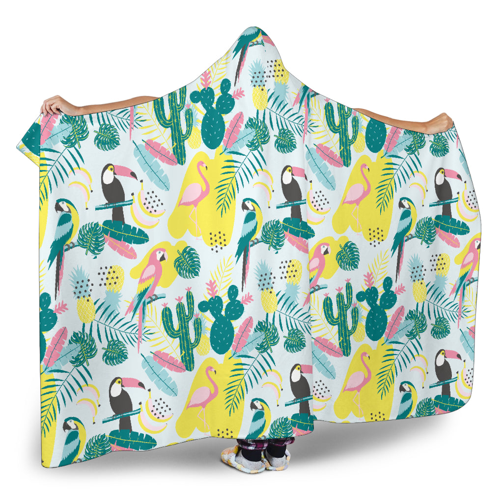 Cute parrot toucan flamingo cactus exotic leaves pattern Hooded Blanket are custom-made-to-order and handcrafted to the highest quality standards.