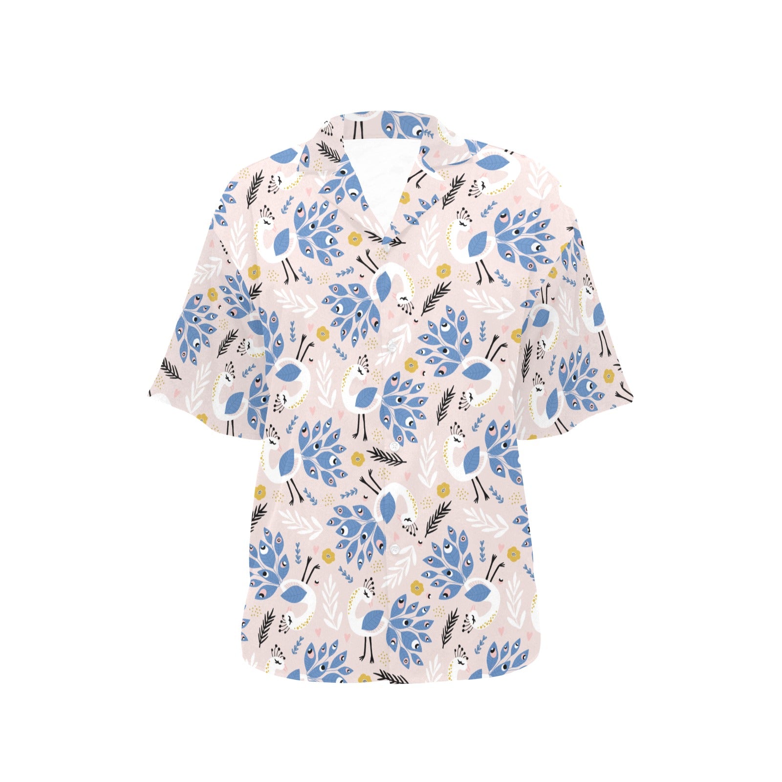Cute peacock pattern Women's All Over Print Hawaiian Shirt