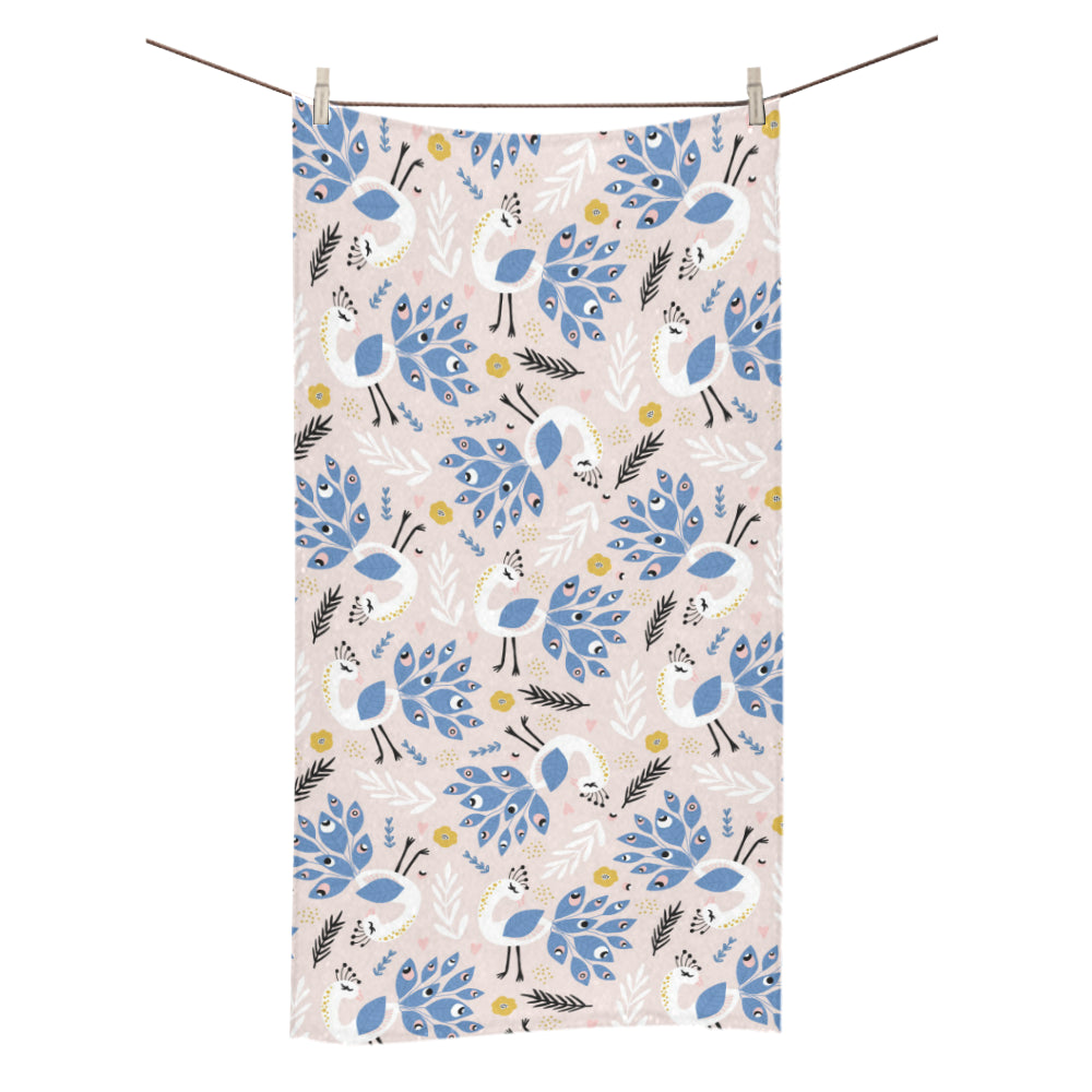 Cute peacock pattern Bath Towel 30"x56" is a uniqued design and limited item. It made to order, hand printed, and sewn with love in our factory.