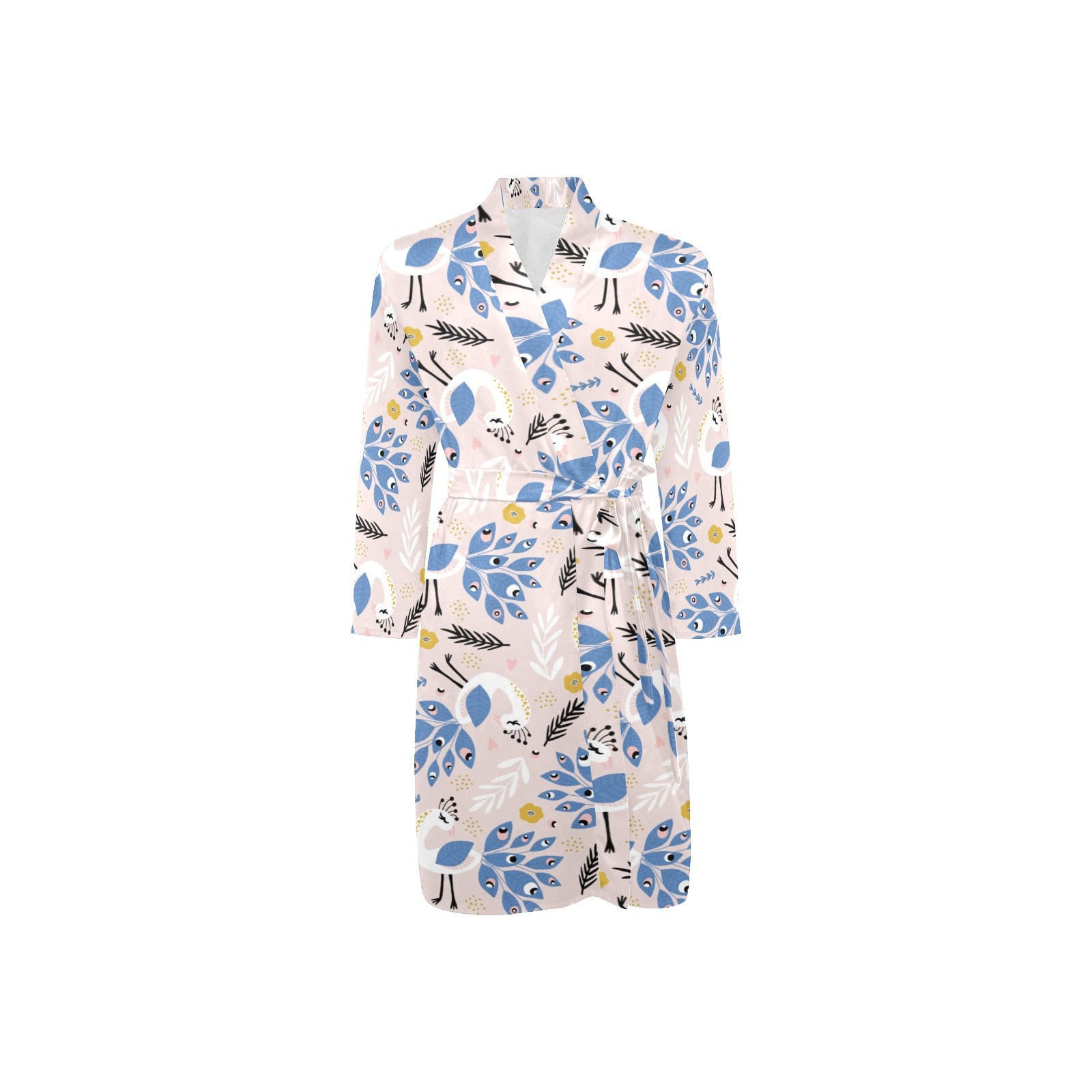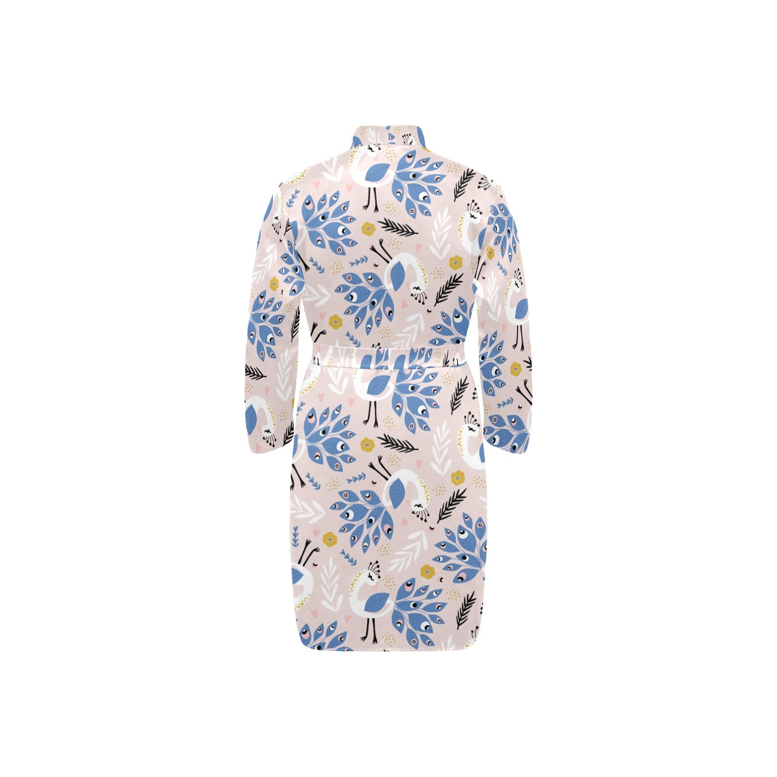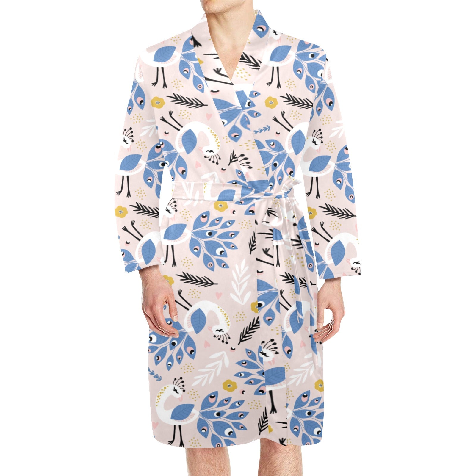 Cute peacock pattern Men's Long Sleeve Belted Night Robe