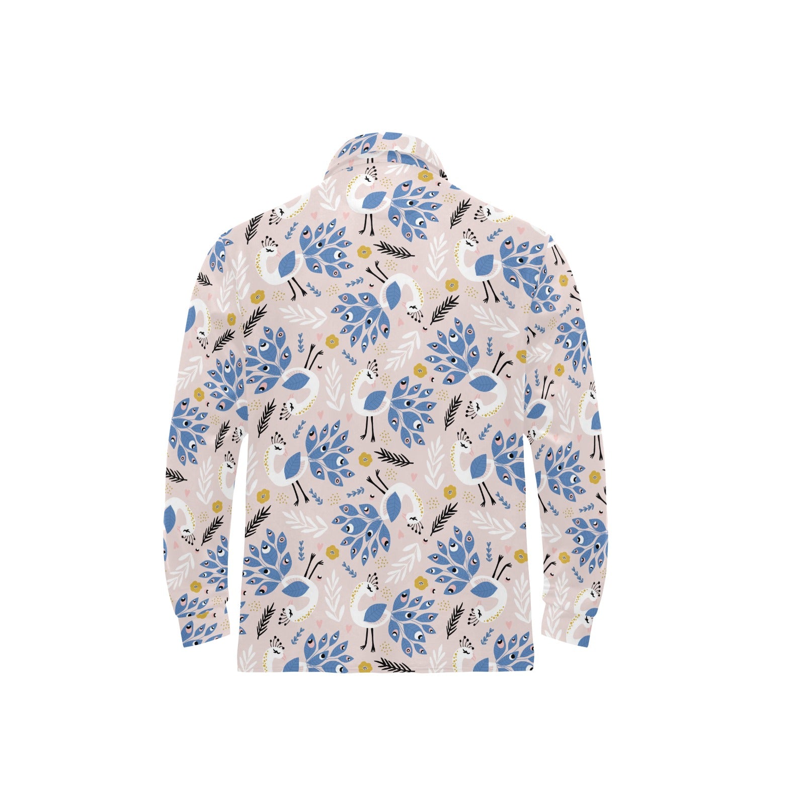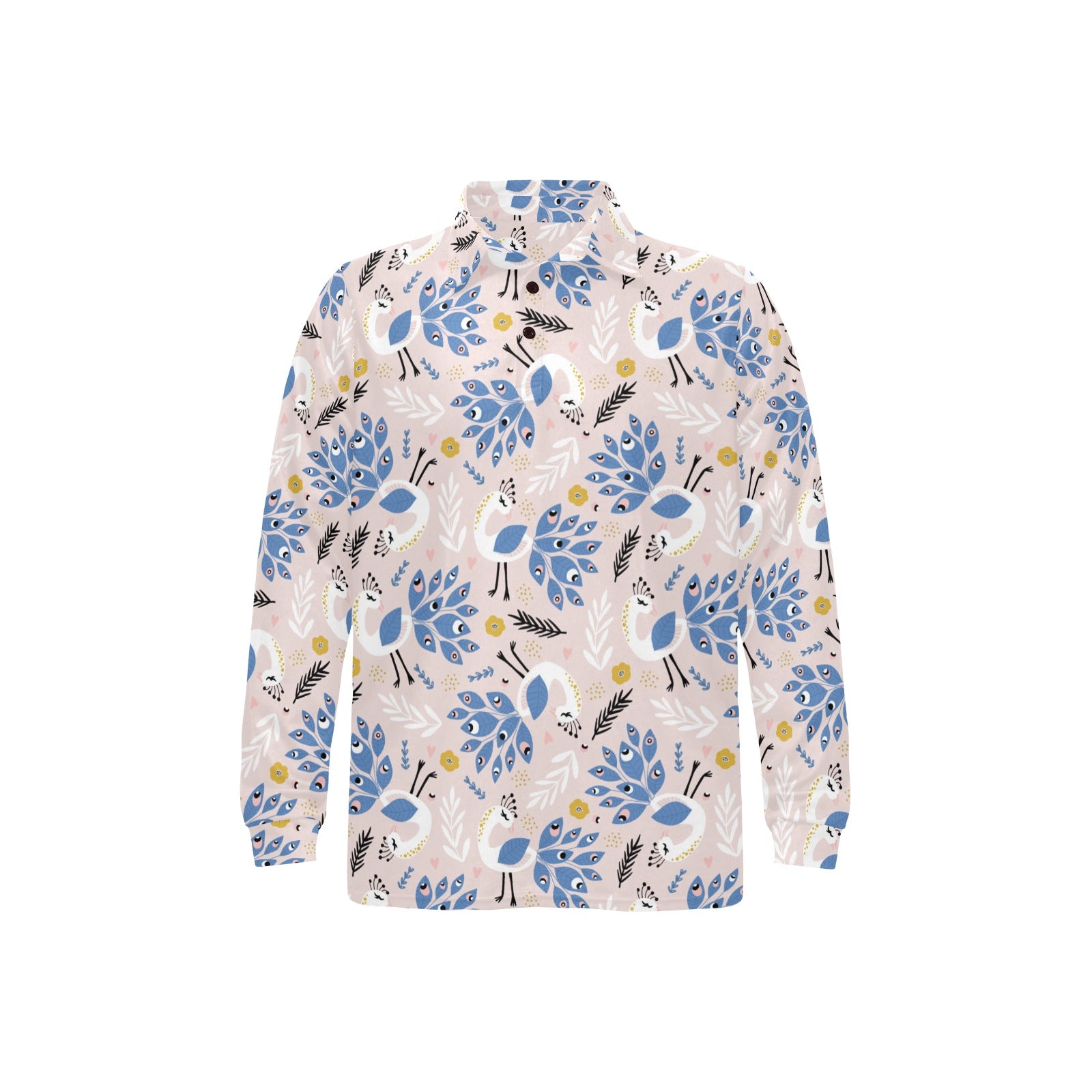 Cute peacock pattern Men's Long Sleeve Polo Shirt