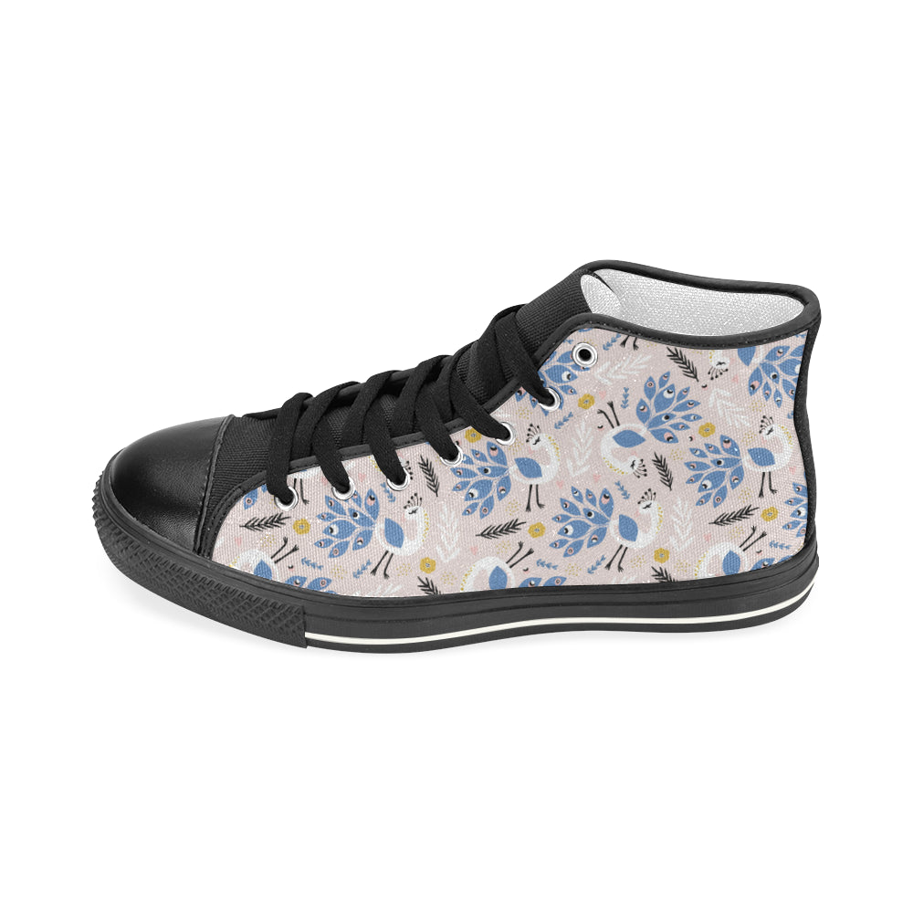 Cute peacock pattern Women's High Top Canvas Shoes Black