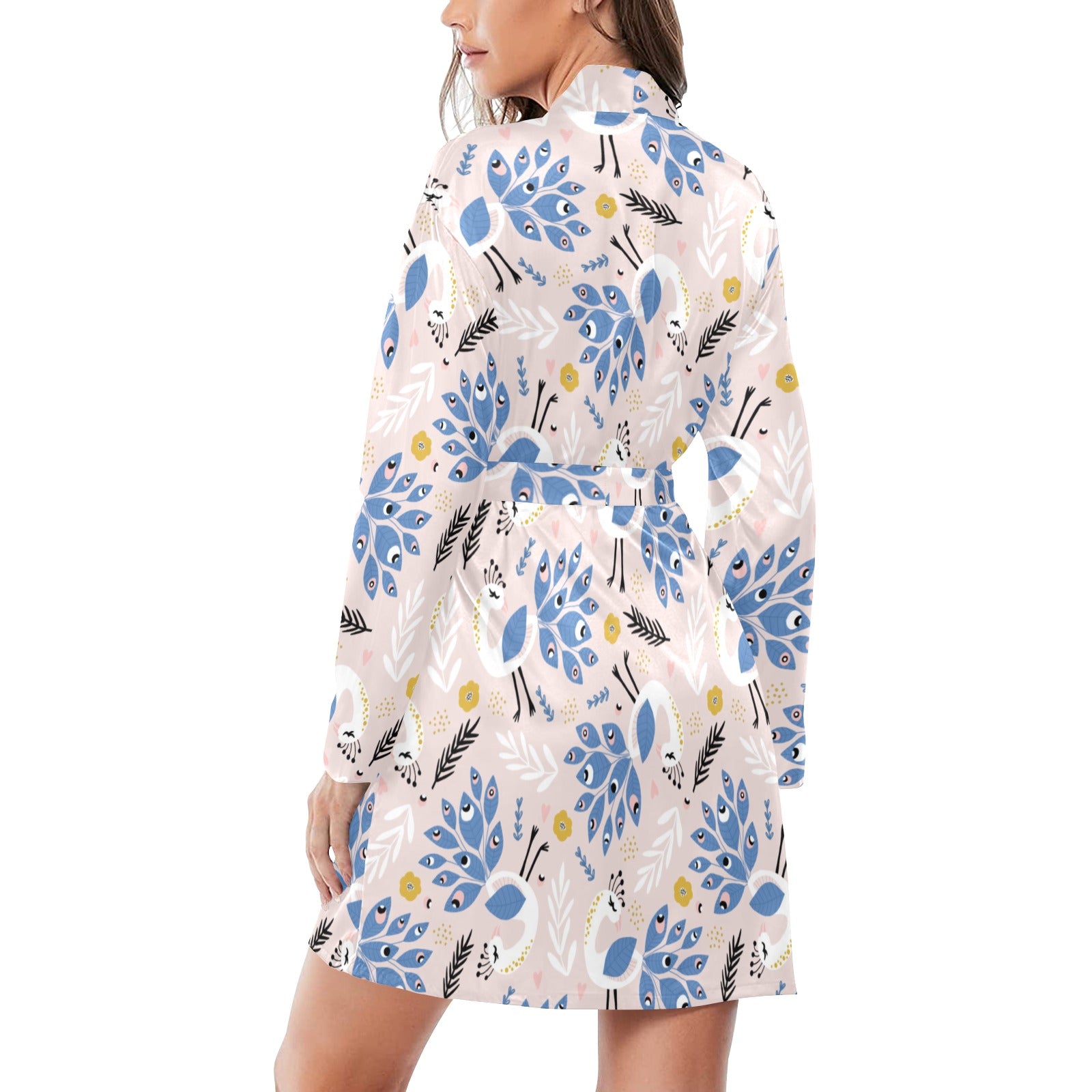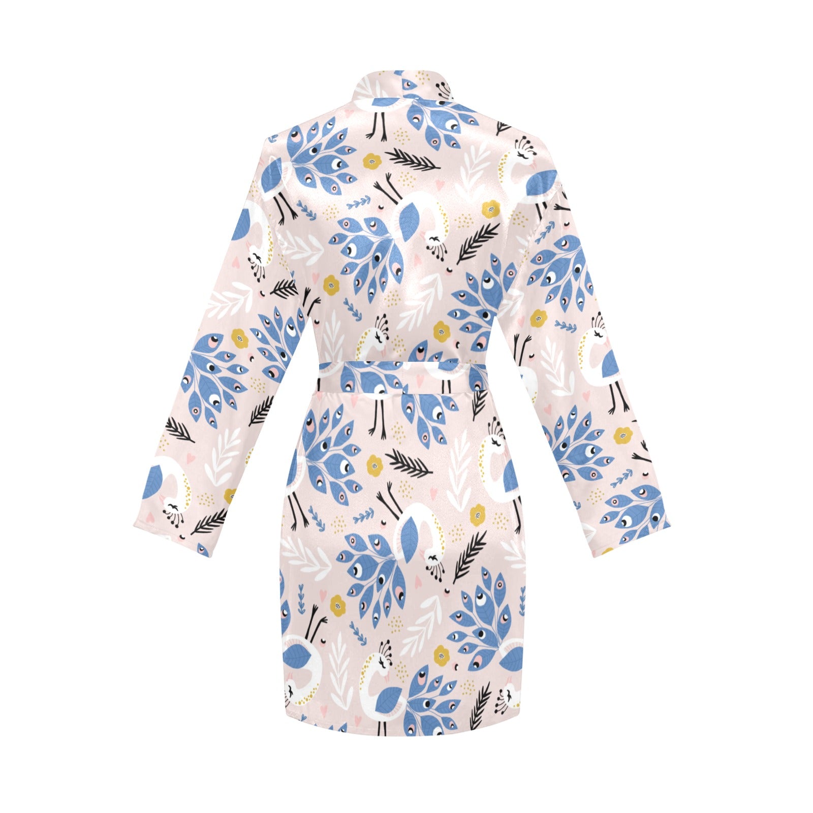 Cute peacock pattern Women's Long Sleeve Belted Night Robe