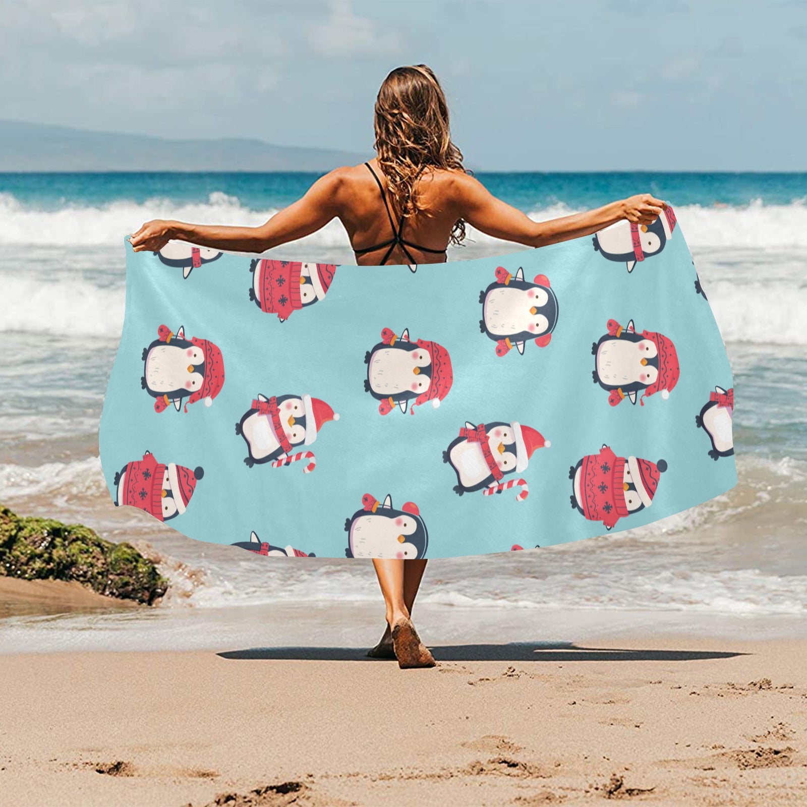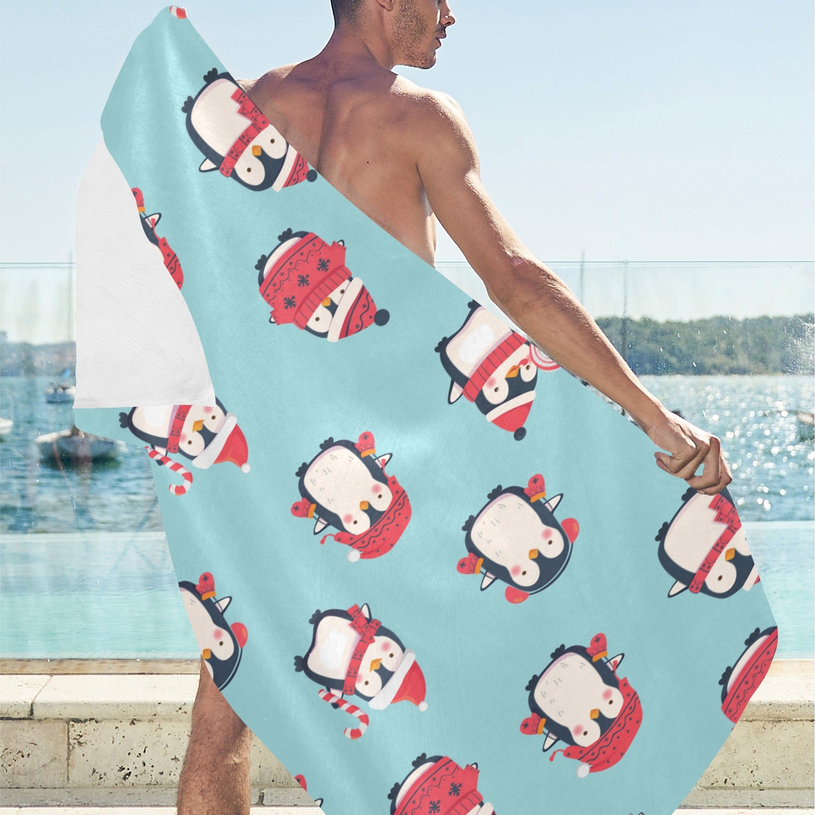 Cute penguin christmas design pattern Beach Towel