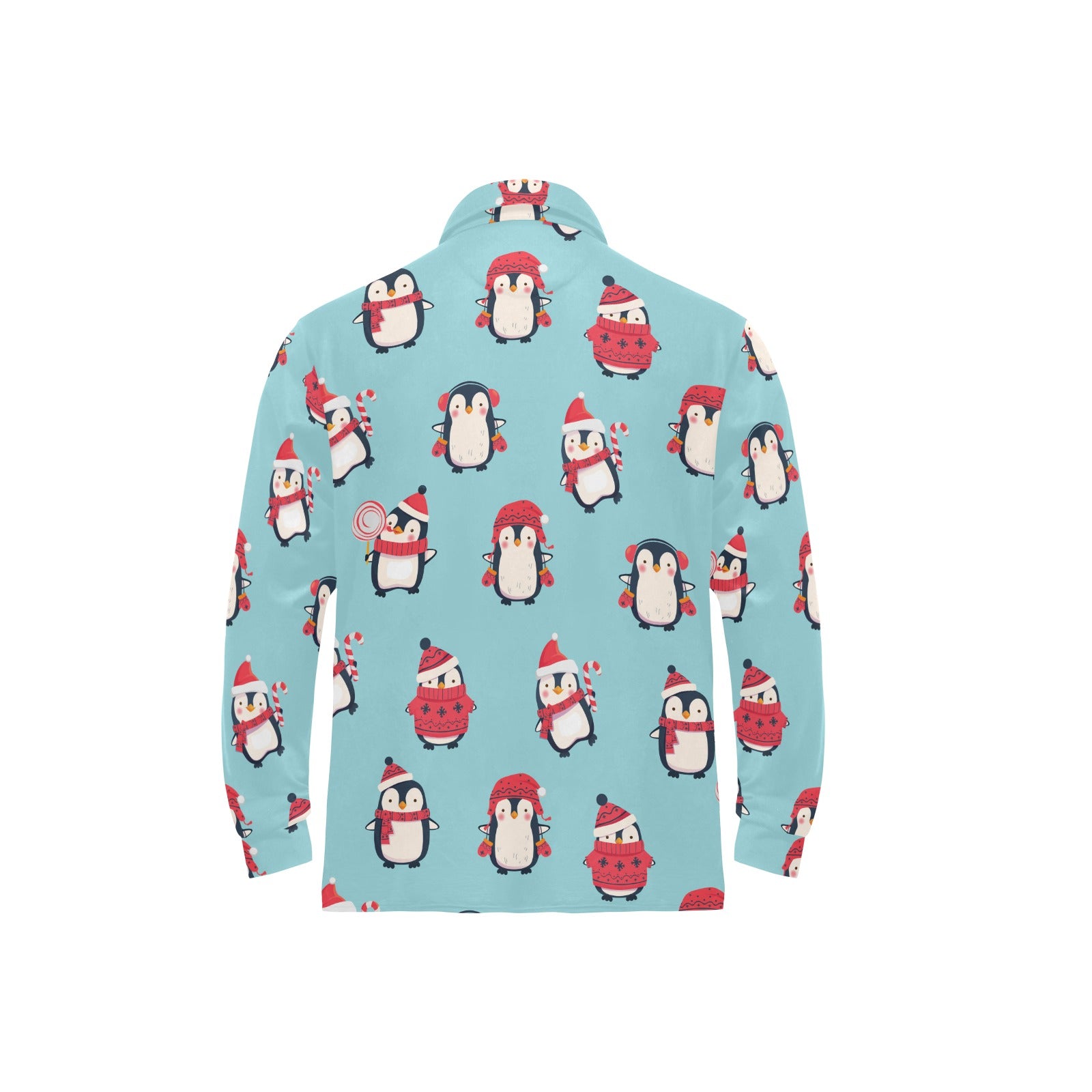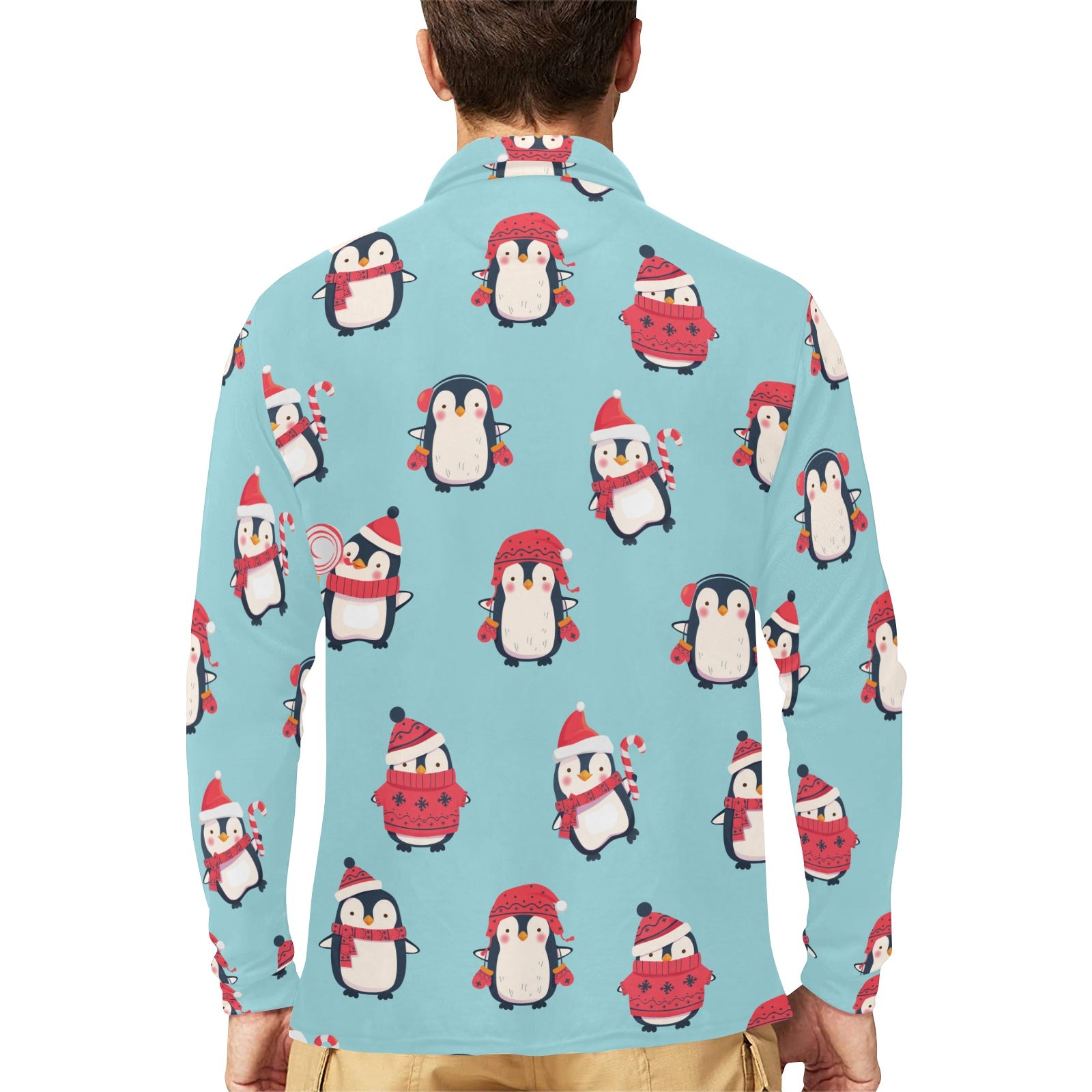 Cute penguin christmas design pattern Men's Long Sleeve Polo Shirt