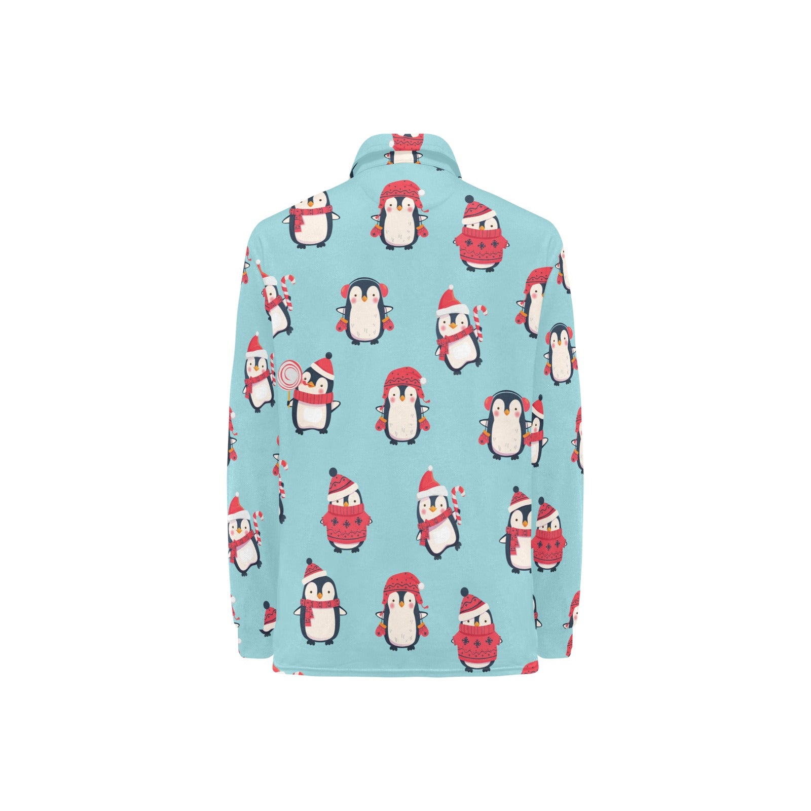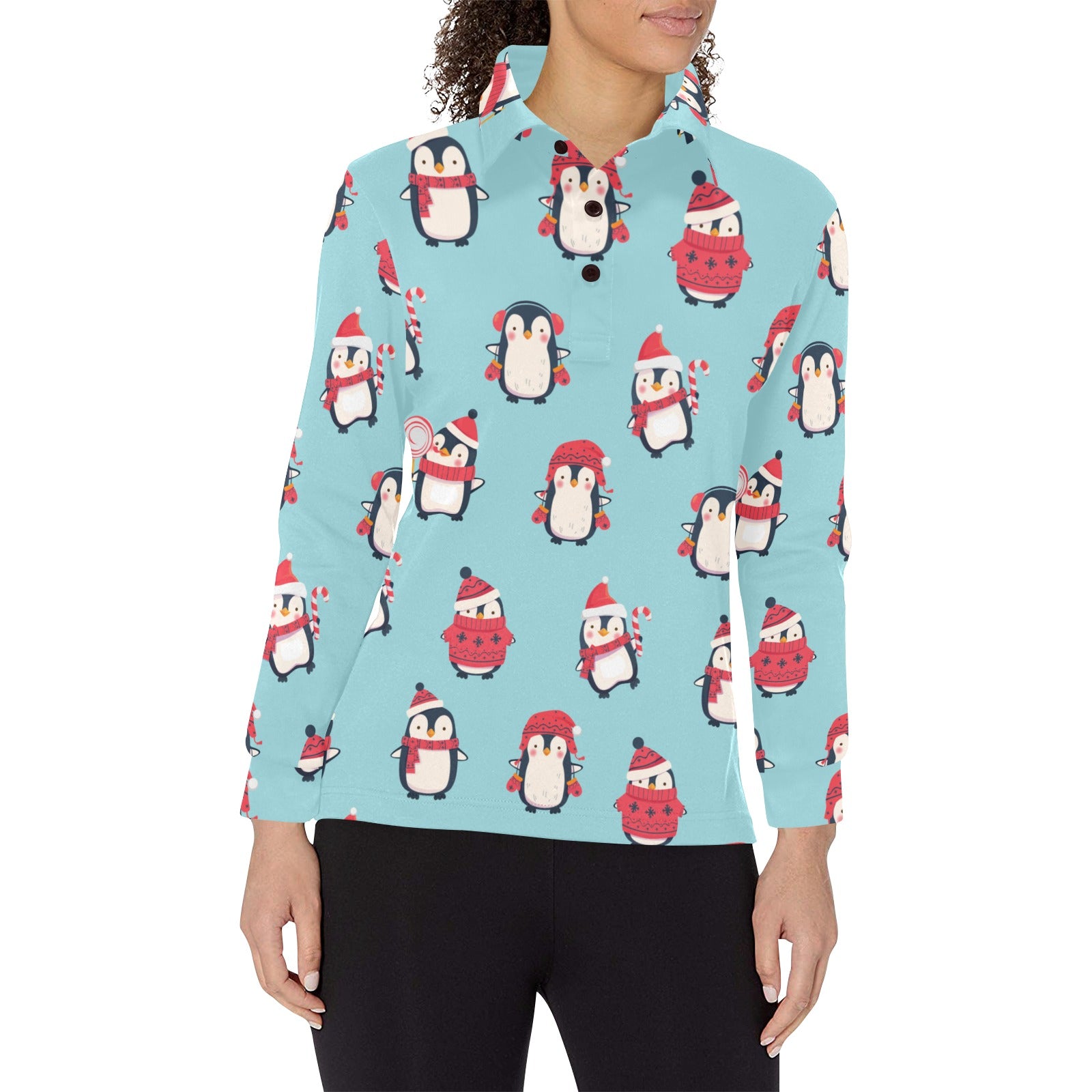 Cute penguin christmas design pattern Women's Long Sleeve Polo Shirt