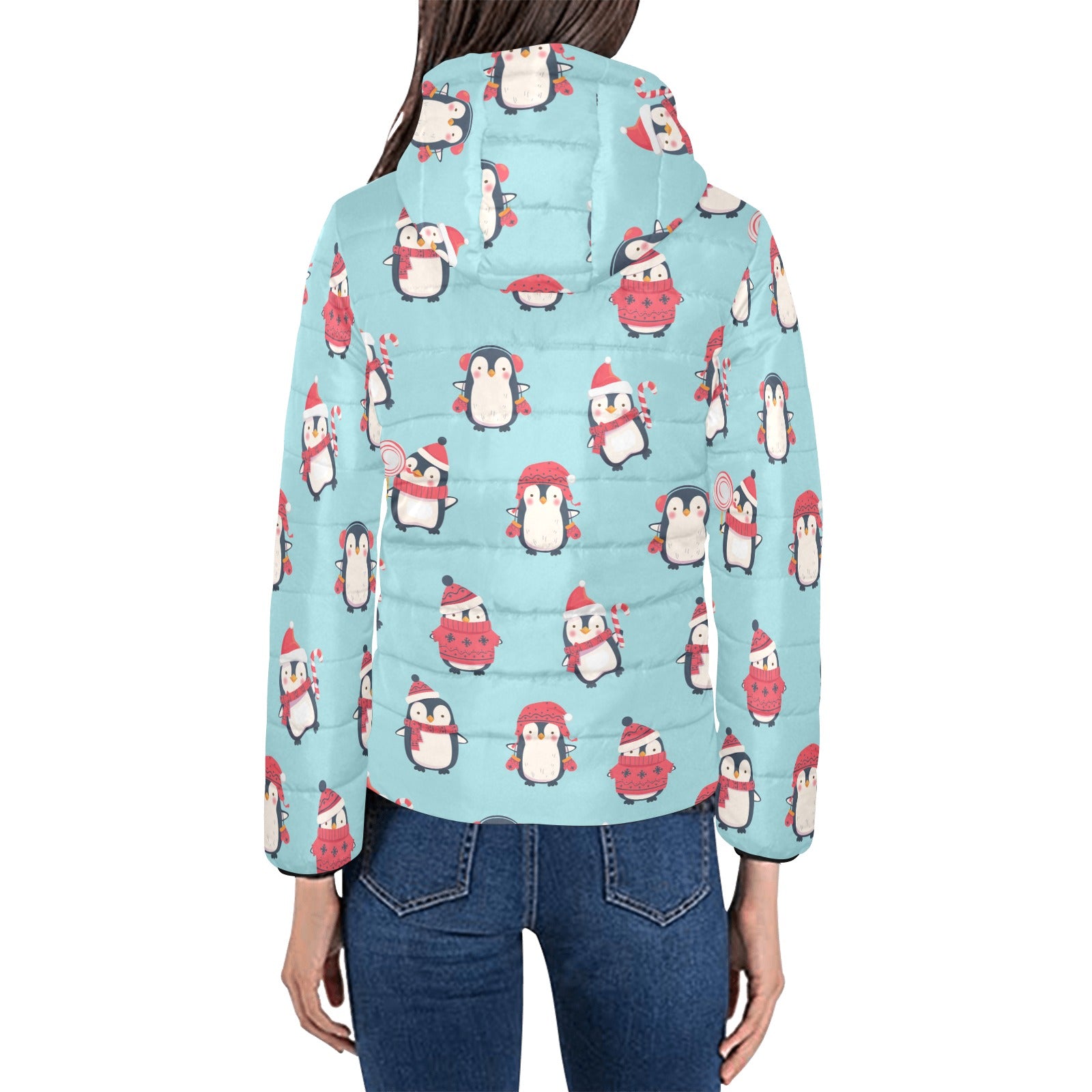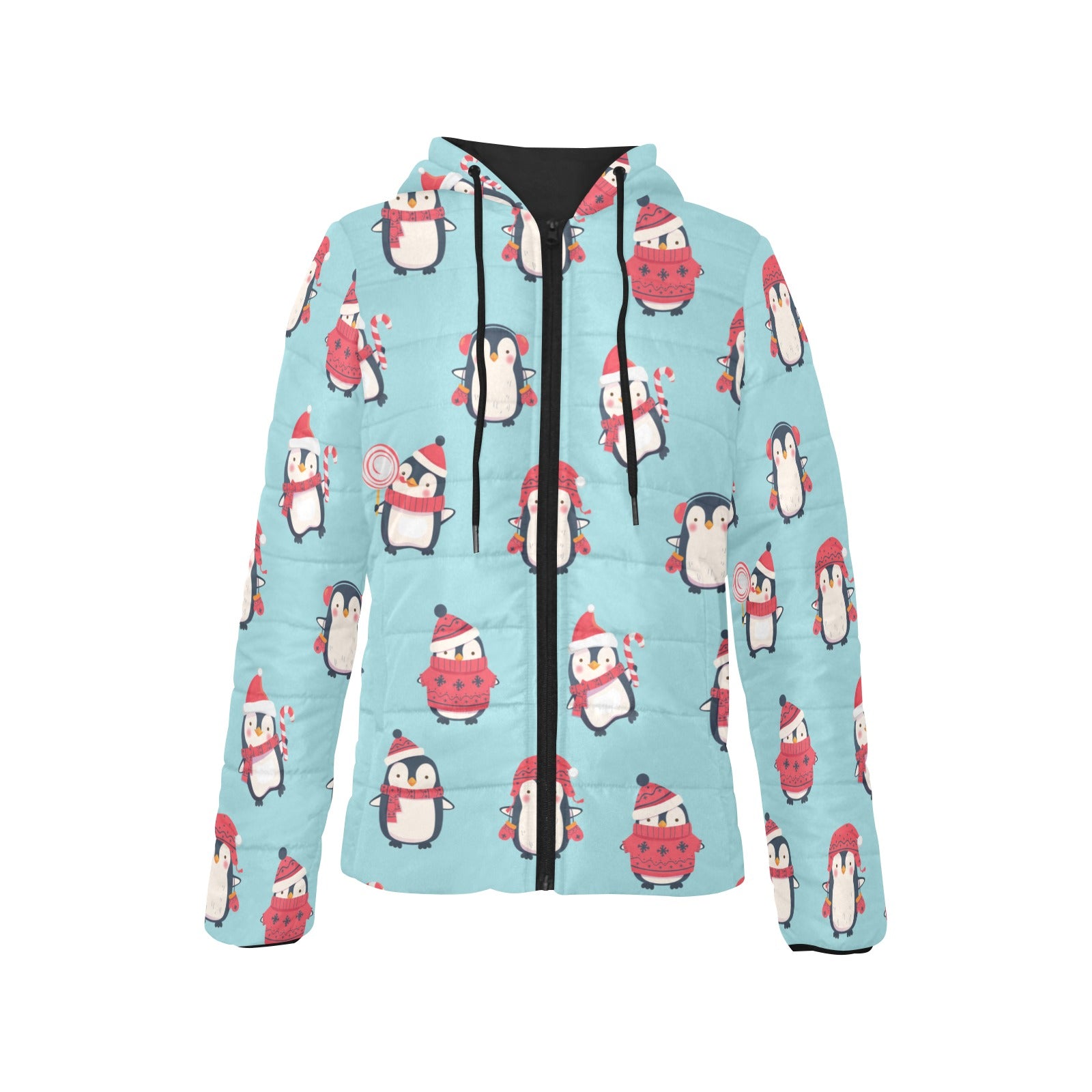 Cute penguin christmas design pattern Women's Padded Hooded Jacket