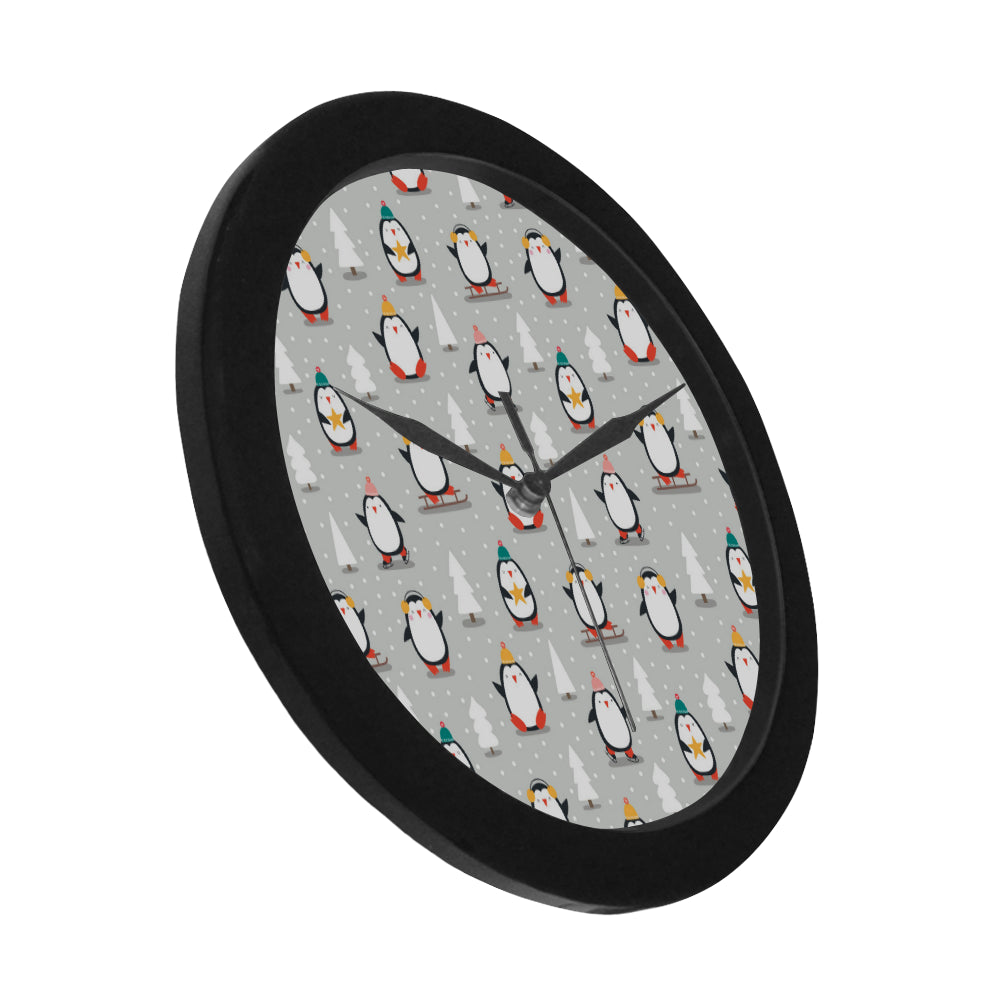 Cute Penguin christmas pattern Elegant Black Wall Clock