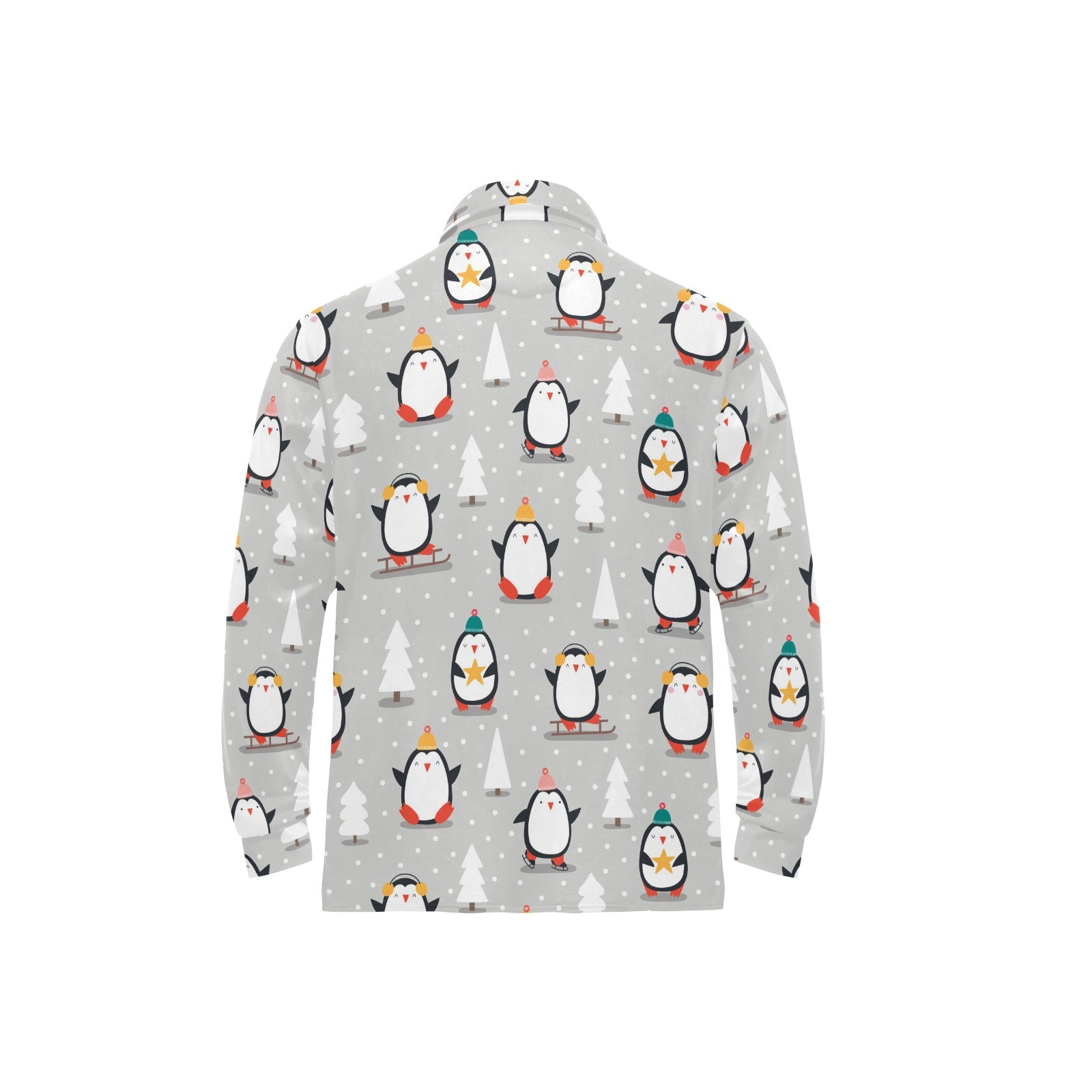 Cute Penguin christmas pattern Men's Long Sleeve Polo Shirt