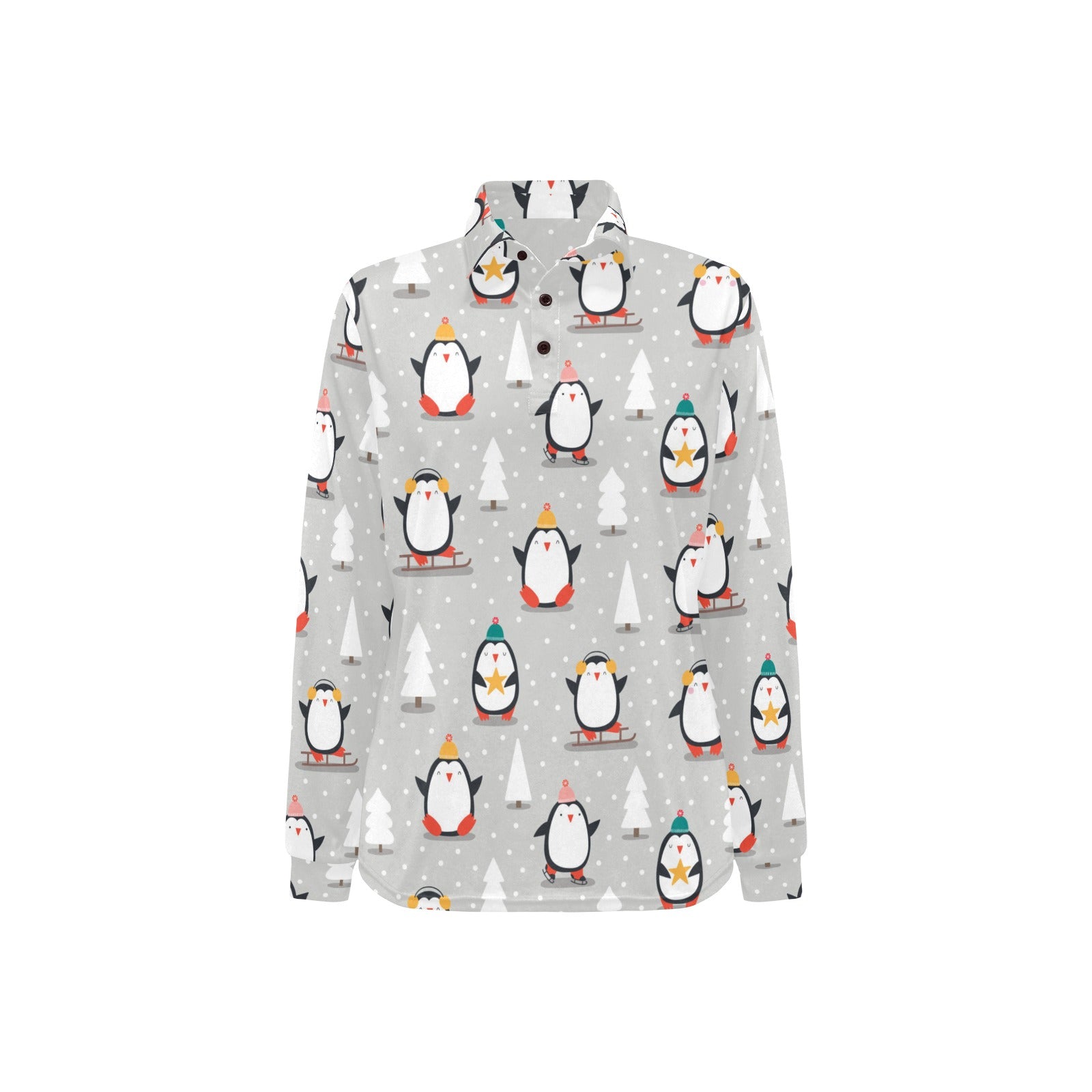 Cute Penguin christmas pattern Women's Long Sleeve Polo Shirt