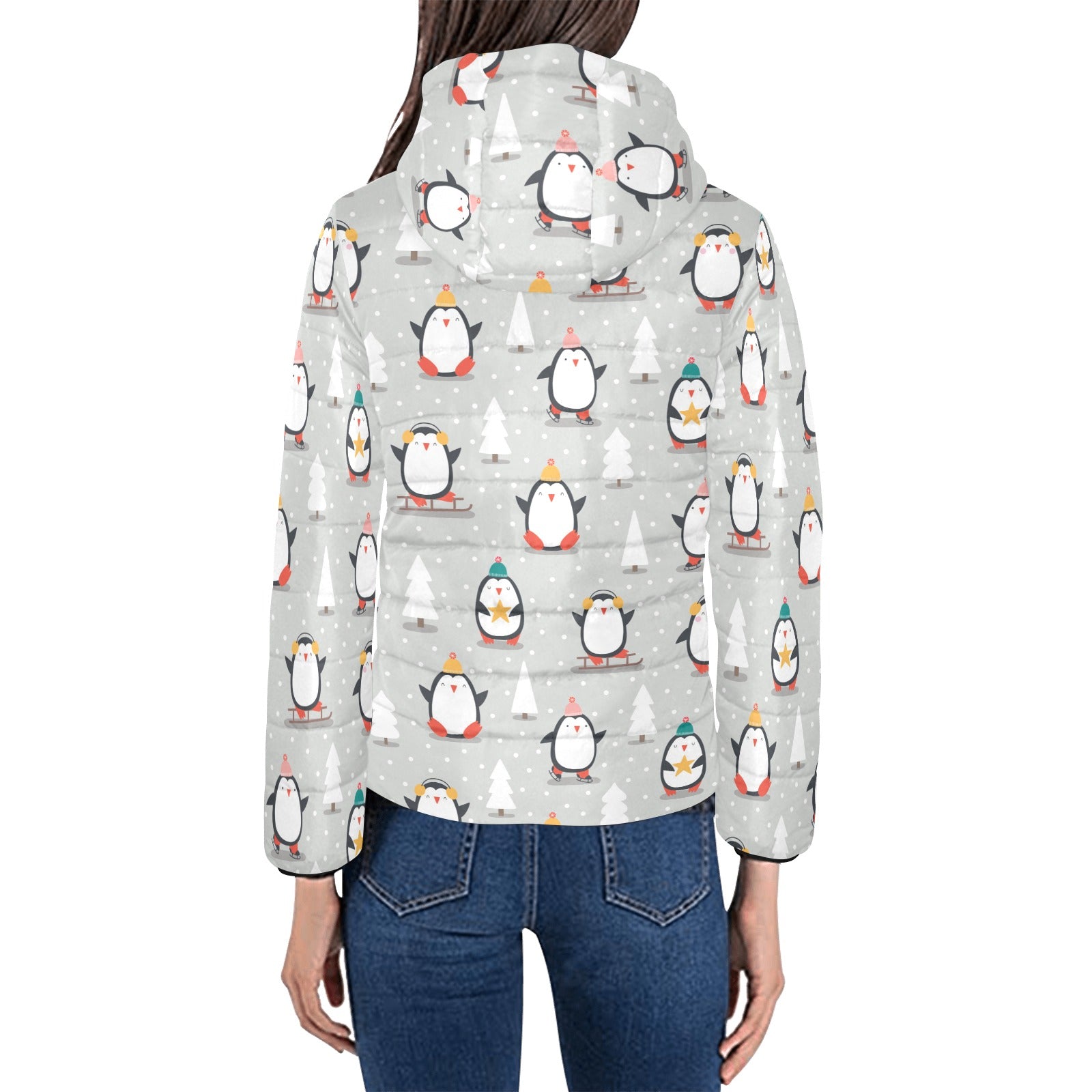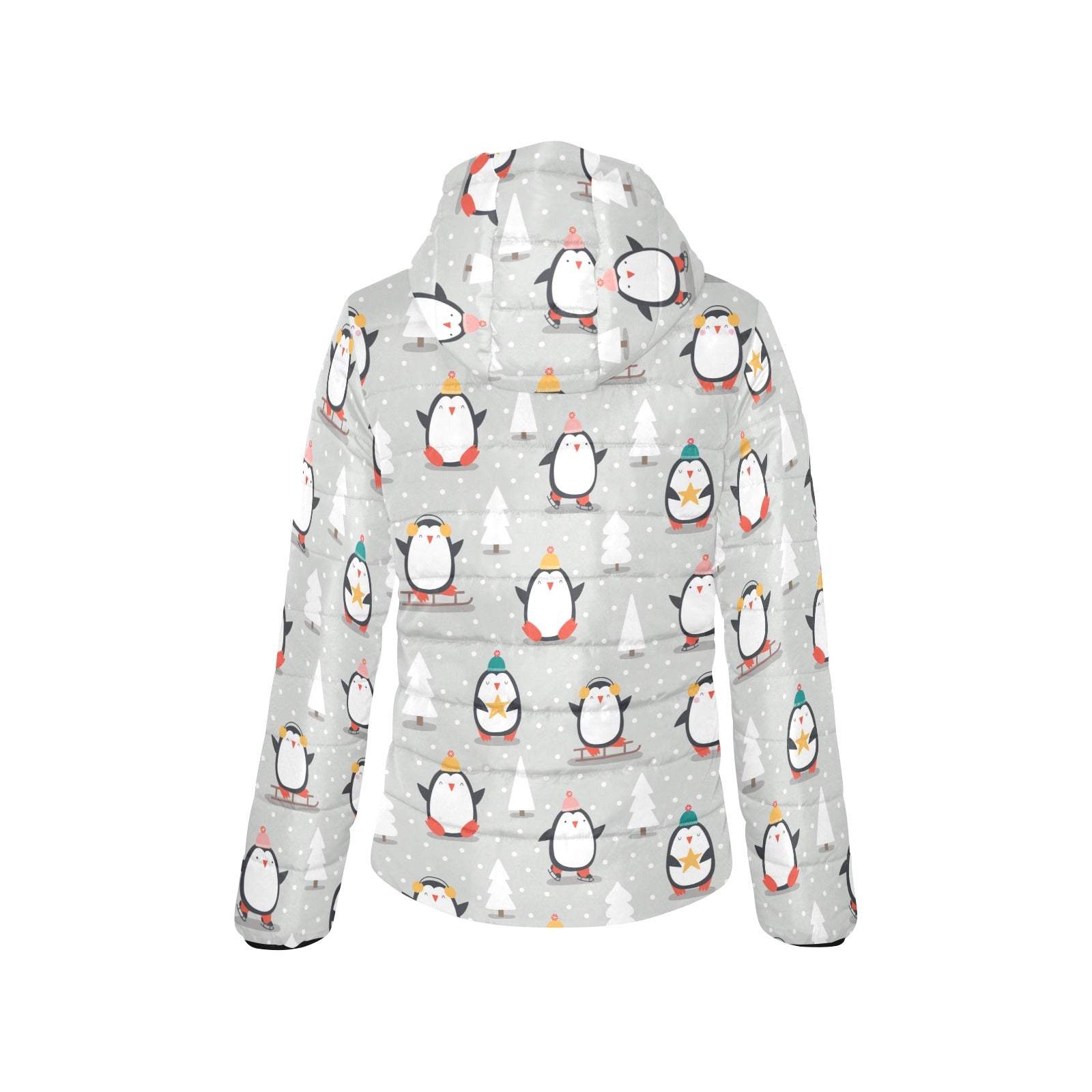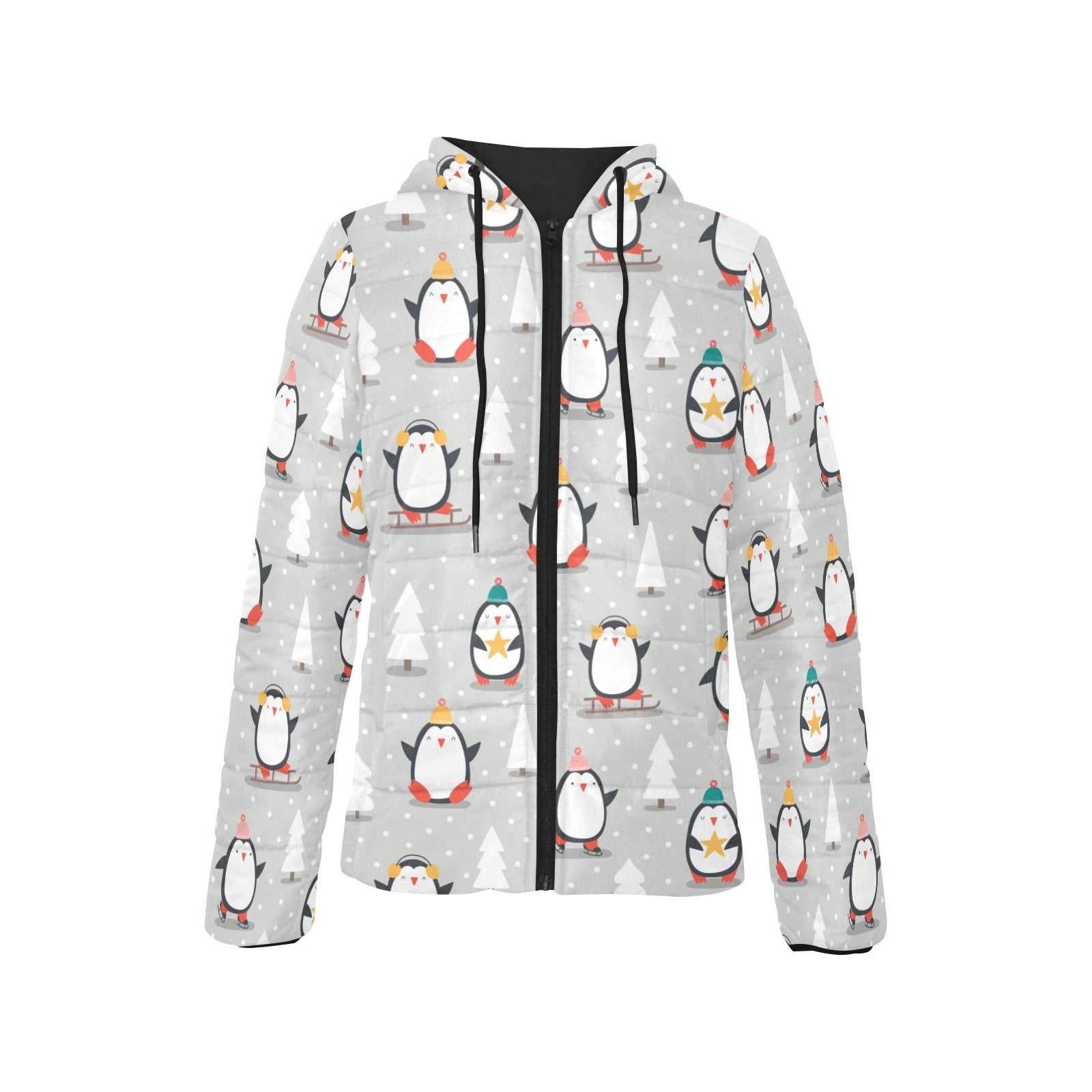 Cute Penguin christmas pattern Women's Padded Hooded Jacket