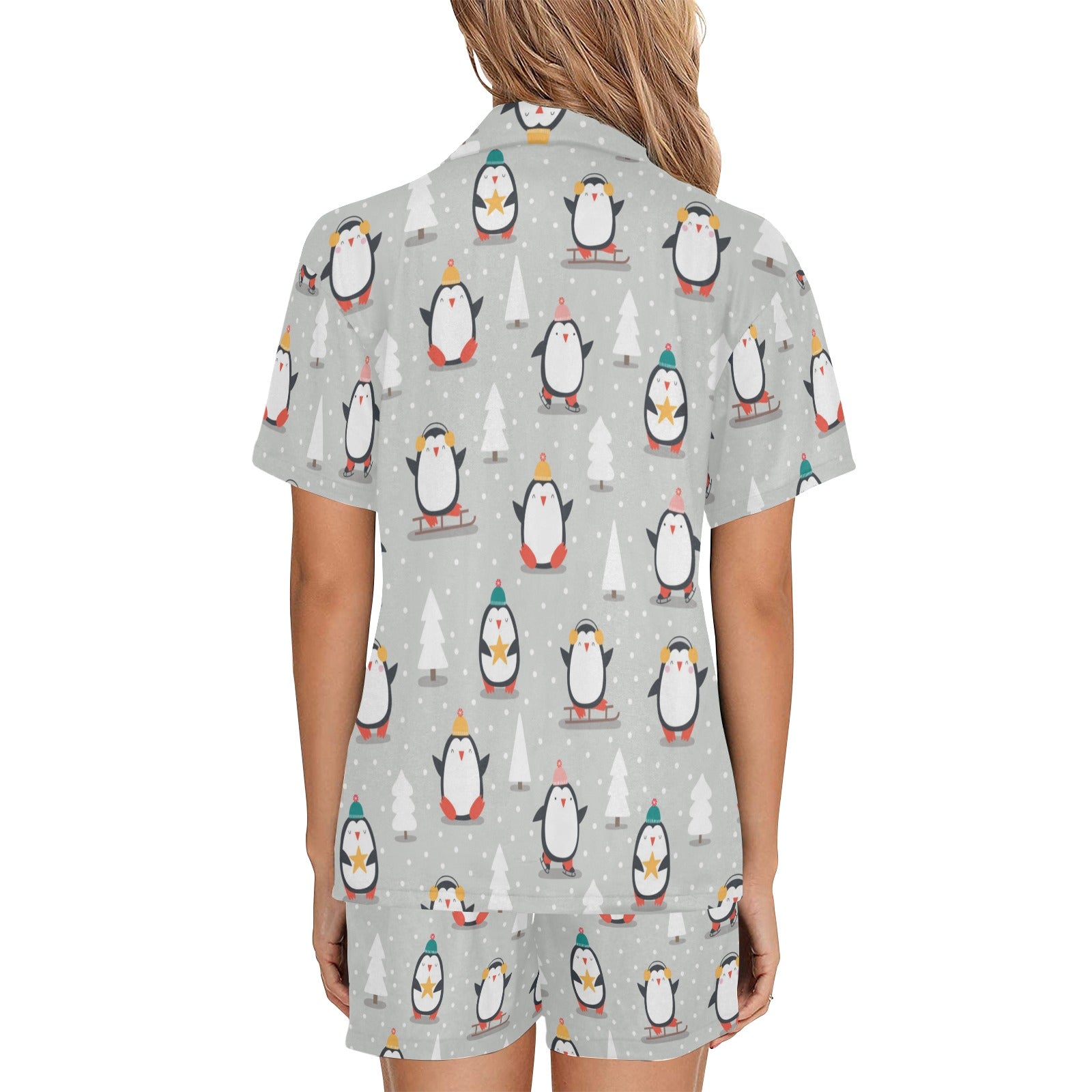 Cute Penguin christmas pattern Women's V-Neck Short Pajama Set