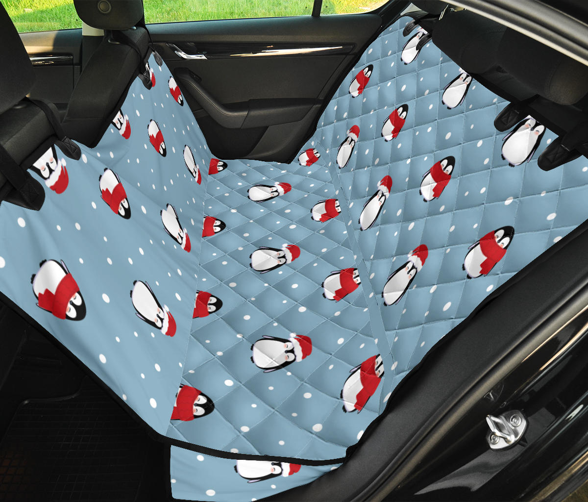 Cute Penguin Christmas Snow Pattern Dog Car Seat Covers
