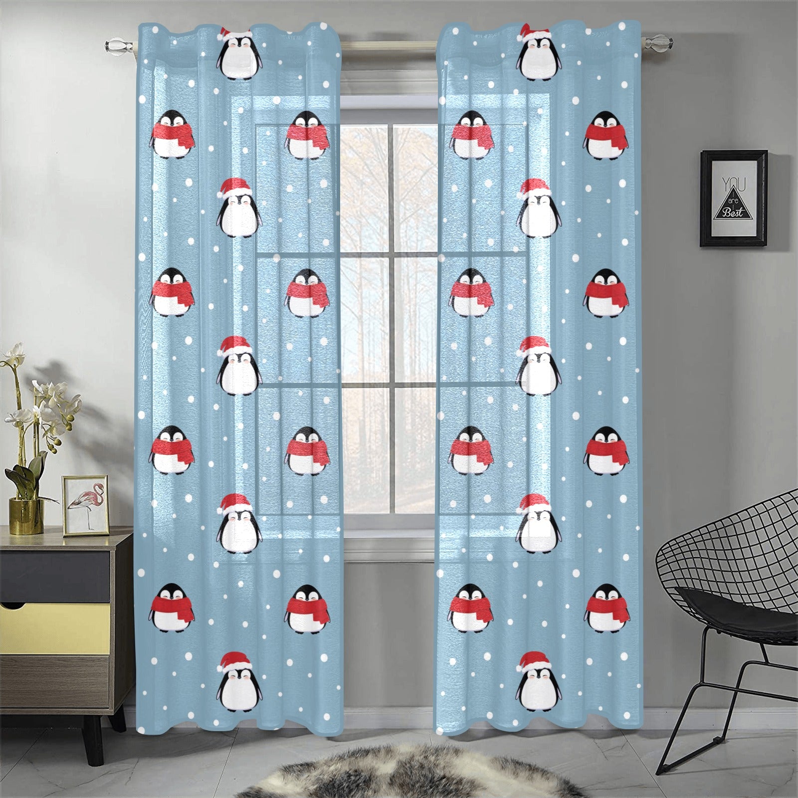 Cute penguin christmas snow pattern Gauze Curtain