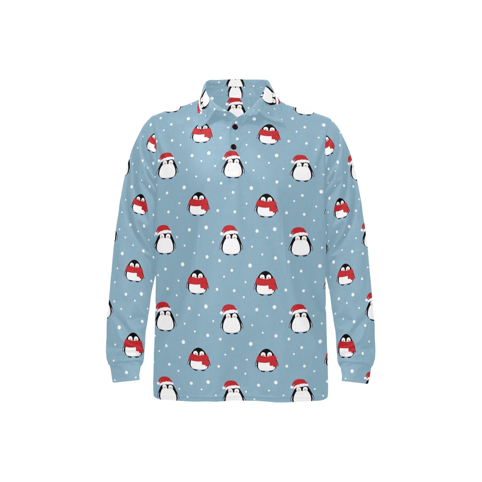 Cute penguin christmas snow pattern Men's Long Sleeve Polo Shirt
