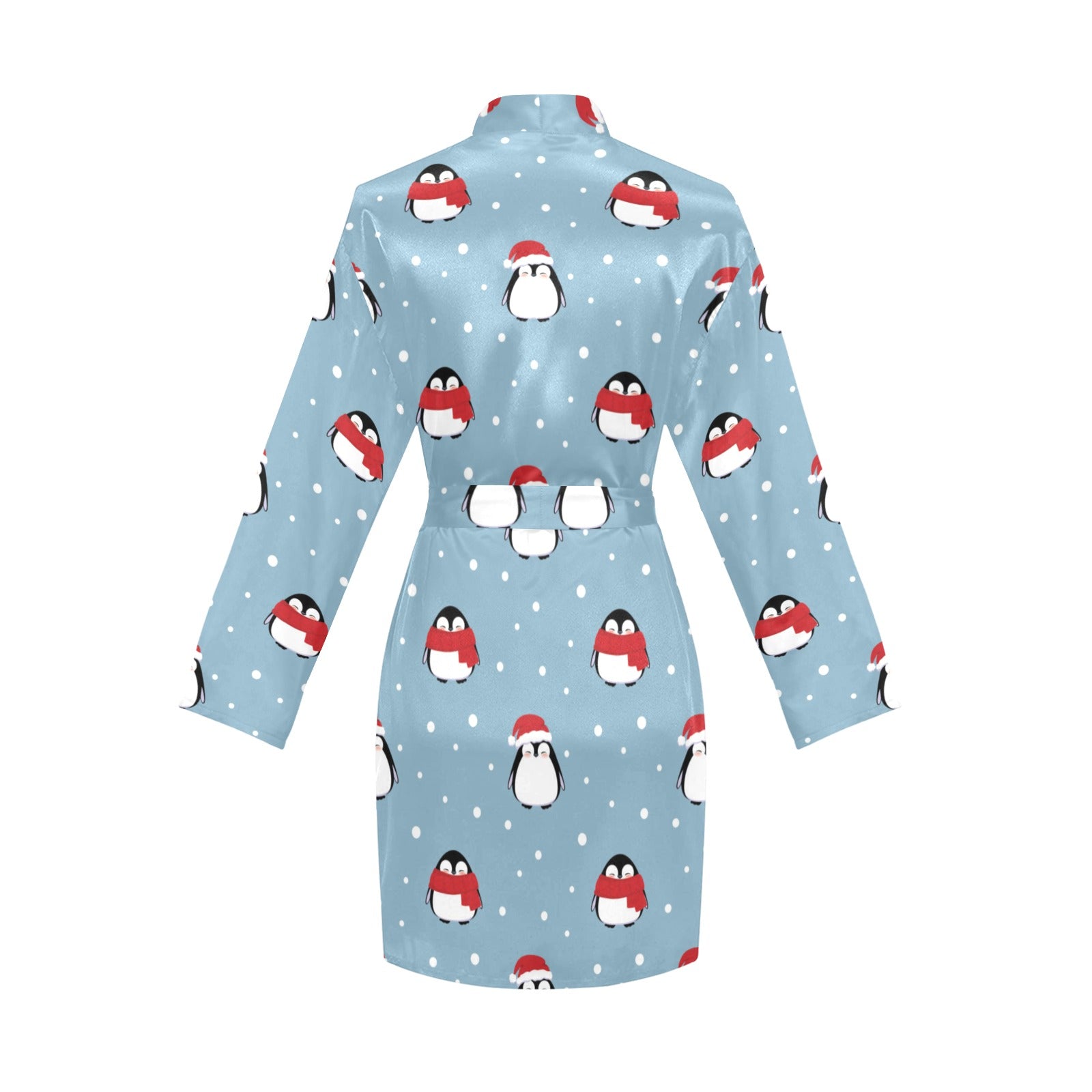 Cute penguin christmas snow pattern Women's Long Sleeve Belted Night Robe
