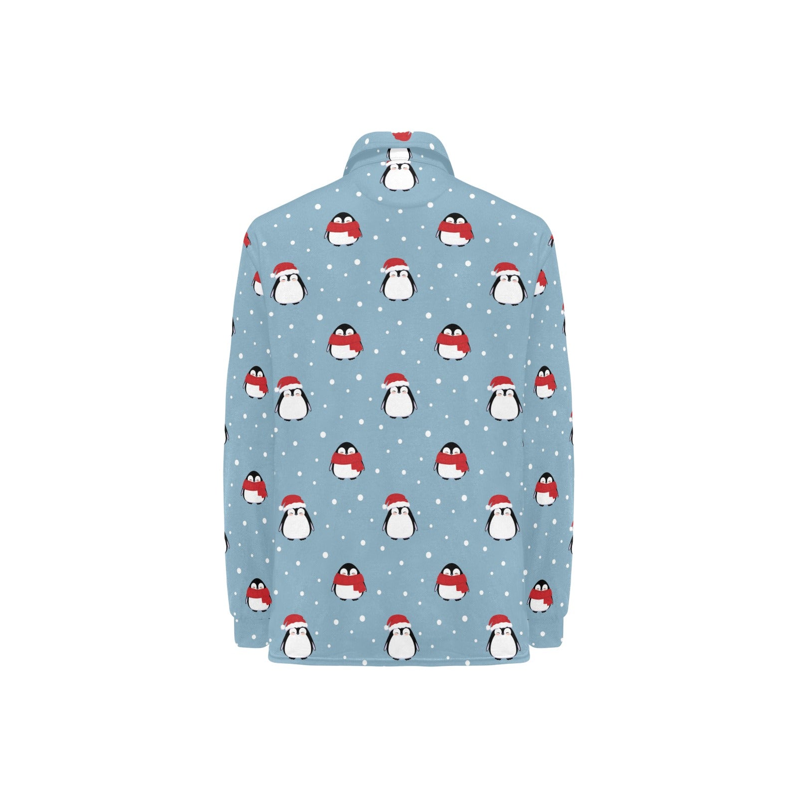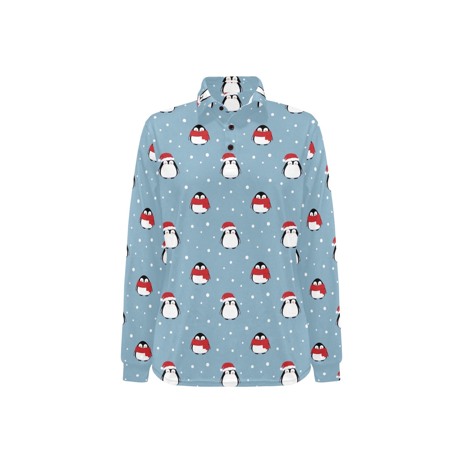 Cute penguin christmas snow pattern Women's Long Sleeve Polo Shirt