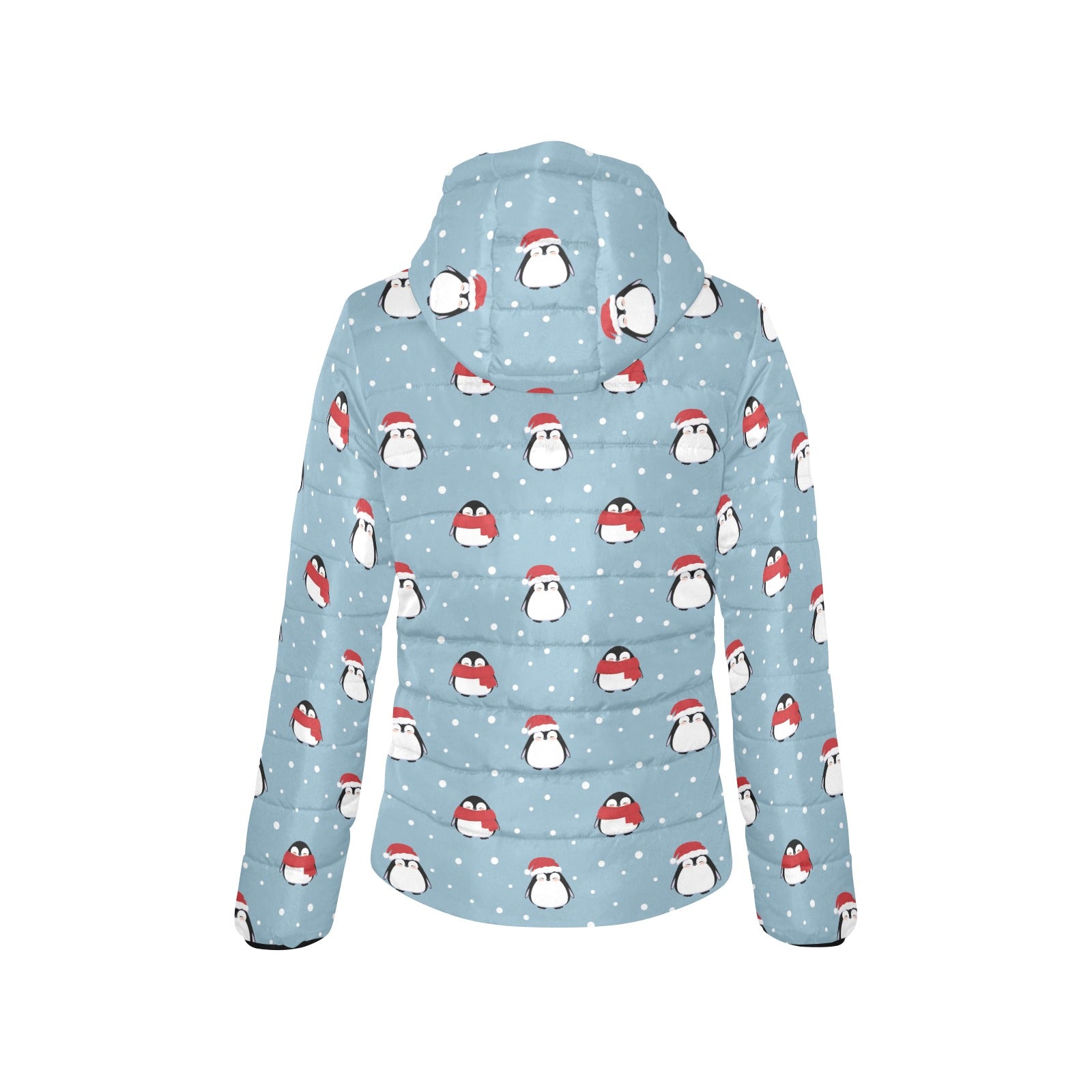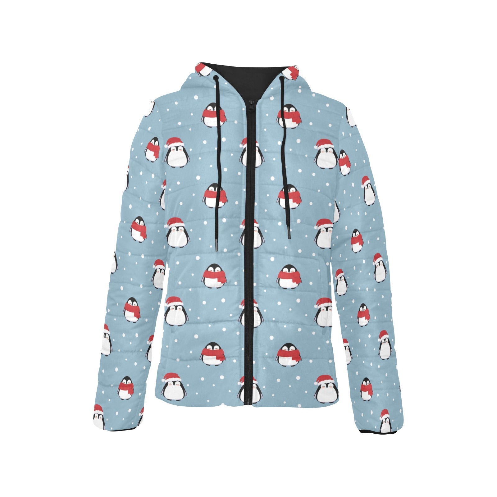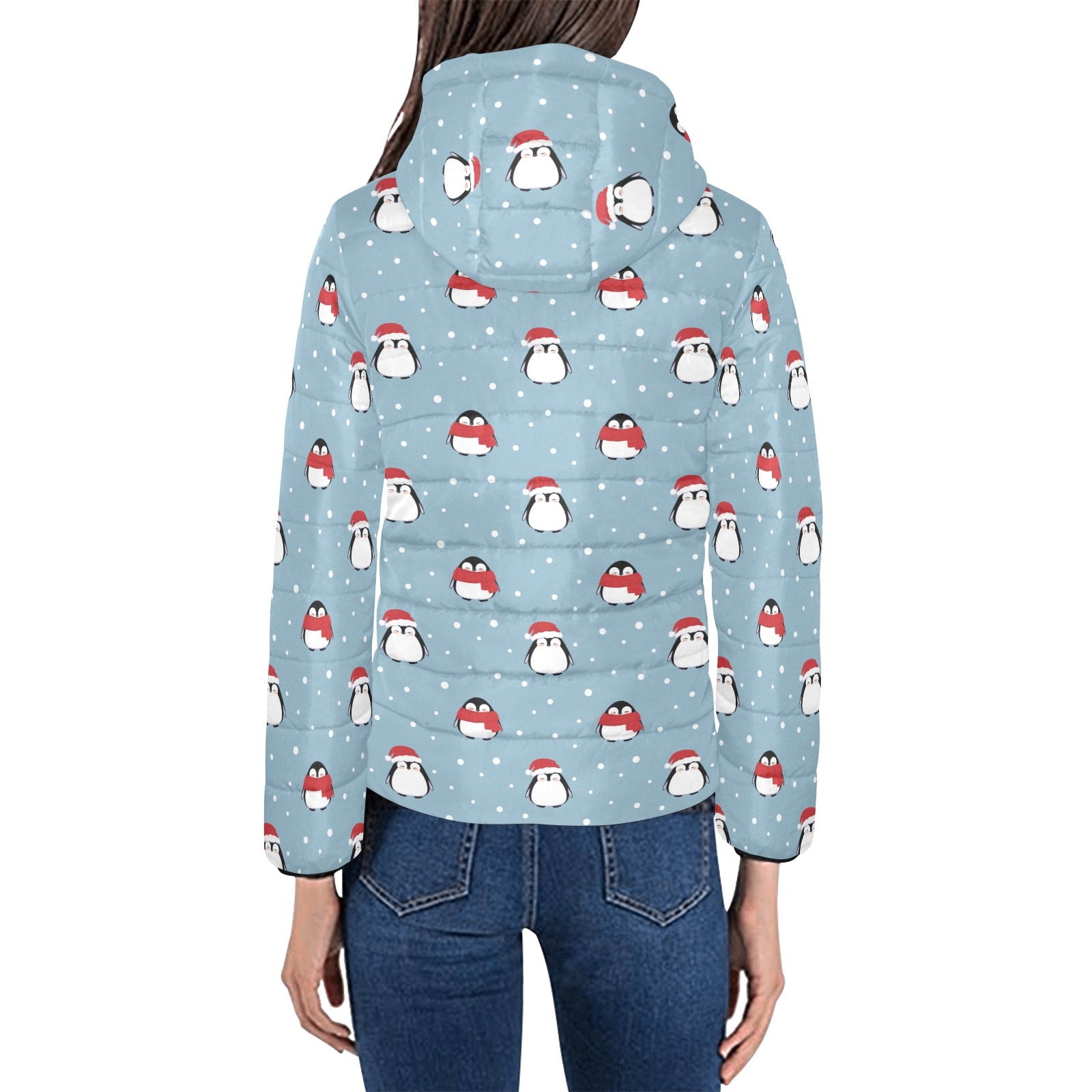 Cute penguin christmas snow pattern Women's Padded Hooded Jacket